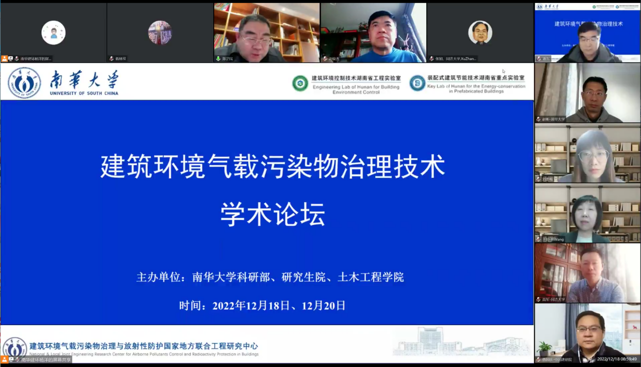 2022年12月18日,由beat365亚洲版官网科研部、研究生院、土木工程学院主办的建筑环境气载污染物治理技术学术论坛在线上顺利开幕。本次学术论坛分别在12月18日上午、20日全天进行。论坛内容丰富、精彩纷呈,每个报告时长45分钟,讨论15分钟,每场报告均吸引了校内外三百余名师生踊跃参与。