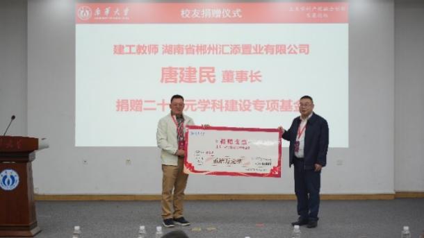然后,捐赠仪式上,湖南省郴州汇添置业有限公司董事长唐建民校友、深圳建数科技有限公司董事长李大庆校友、深圳市怡净净化有限公司总经理詹仰校友、唐山同海净化设备有限公司总经理董林校友等代表上台发言,感谢学校和学院一直以来的支持,并承诺继续为学科的发展贡献自身力量。仪式旨在表彰前辈校友的无私奉献,激励年轻一代继承并发扬光大。