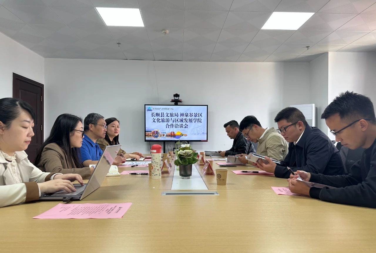 为深化产教融合,加强访企拓岗力度,推动人才培养与地方产业需求紧密衔接,2025年4月27日上午,文化旅游与区域发展学院在大学城校区师德楼1310会议室举办“校-地-企合作洽谈会”。会议由院长主持,长顺县文旅局局长许增强、长顺县文旅局副局长詹浩、神泉谷景区(好花红公司)董事长李飞安、贵阳市湖北商会轮值会长孙胜移、beat365中文官方网站文化旅游与区域发展学院党委书记徐楠云、党委副书记吕渊及教师代表齐聚一堂,共商合作大计。