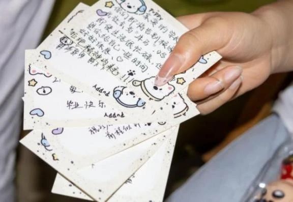 活动特别设置了 “寄语互赠” 环节充满热情。在校生用卡片写下 “愿学长学姐前途似海,来日方长”“谢谢你们的光,照亮了我的大学” 等祝福;毕业生则留下 “珍惜课堂,珍惜朋友,珍惜每一个可以犯错的瞬间”“永远不要停止阅读与思考” 等肺腑之言。当满载着爱与期许的卡片被随机抽取、朗声宣读时,不少同学眼眶湿润。这一环节不仅是跨越年级的双向治愈,更是大信精神的生动传承。