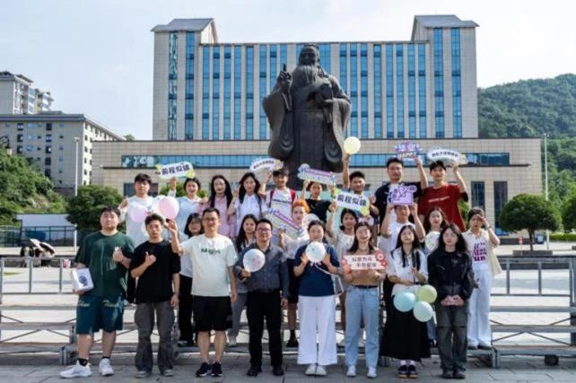 活动最后,全体人员移步至孔子像前合影。随着快门声响,那些关于告别的不舍、关于未来的憧憬,都定格成了青春里永不褪色的画面。