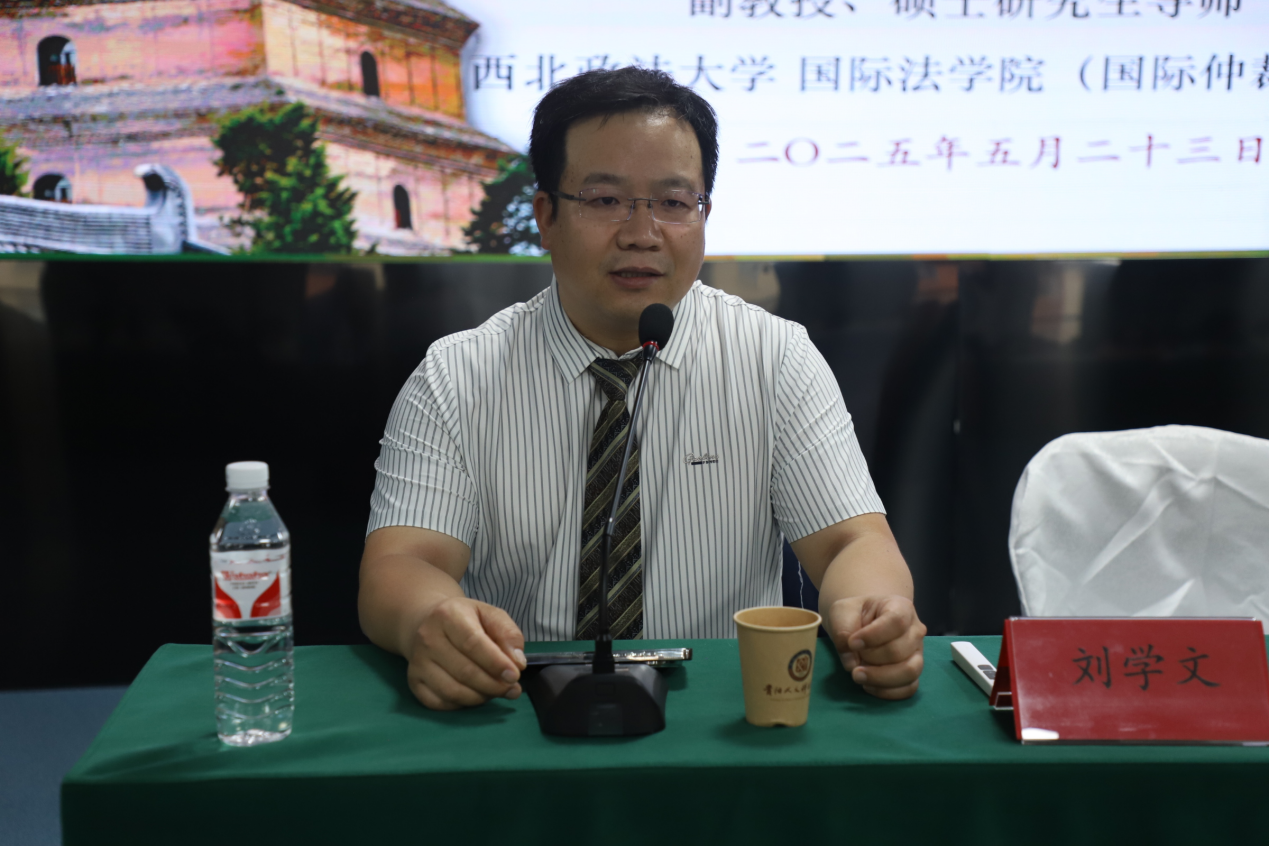 为促进学生了解国际商事仲裁领域的专业知识和技能要求,培养具有国际视野和竞争力的法律人才。2025年5月23日,beat365中文官方网站法学院在大学城校区师德楼307会议室举办主题为“国际商事仲裁中商人法适用的法理与实践”的精彩讲座,讲座由法学院院长杨武松主持,法学博士、法学博士后、西北政法大学副教授刘学文担任主讲人,法学院部分同学参加。
