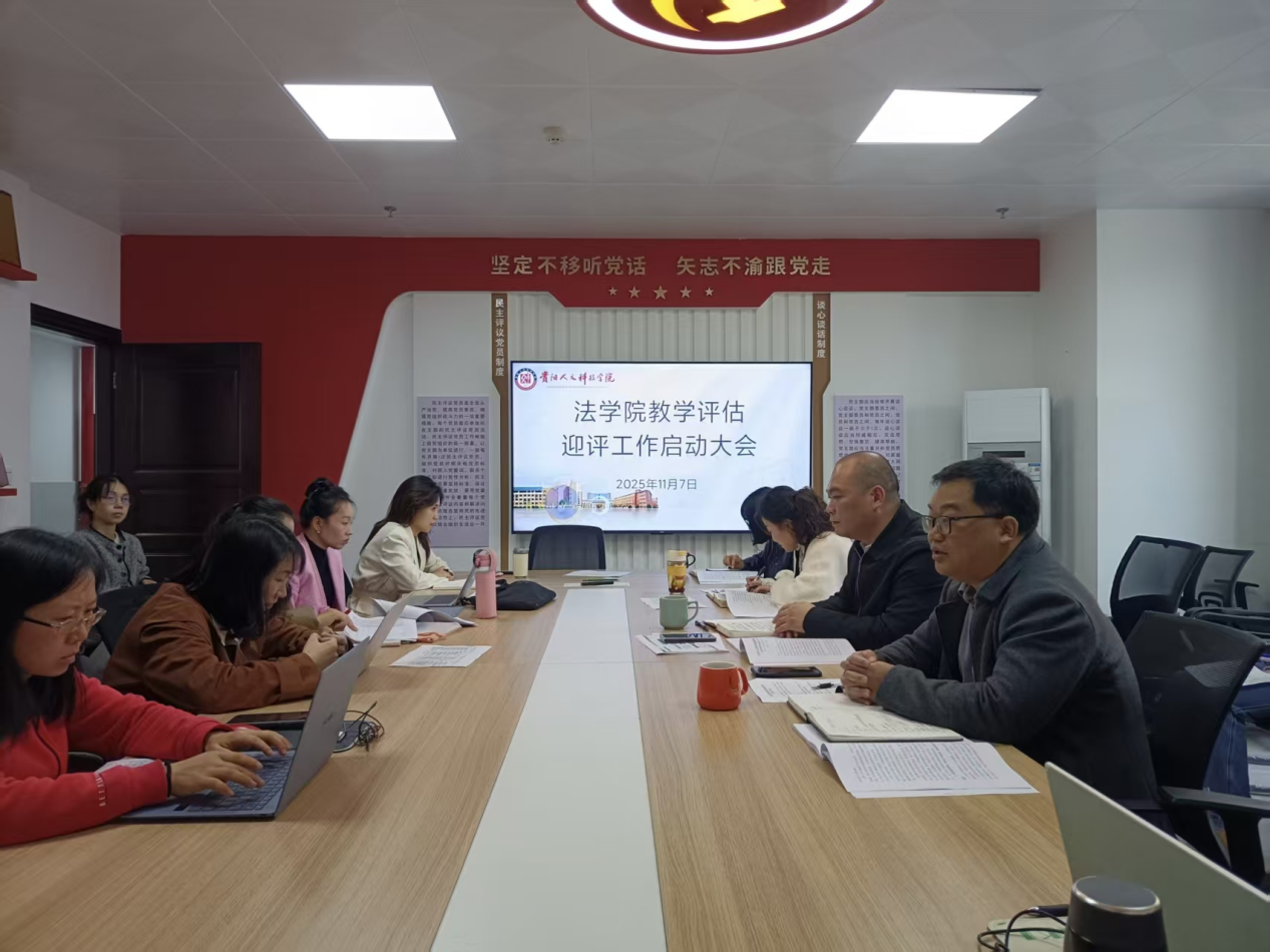 为扎实推进教育部本科教学工作合格评估迎评准备,全面提升学院办学质量与核心竞争力,2025年11月7日上午,法学院在师德楼610会议室召开教学评估迎评工作启动大会。法学院院长杨武松、党委书记张福高以及法学院全体教师参会。会议围绕评估指标体系、任务分工、阶段安排等方面进行了全面部署,并动员全院教师以高度的责任感和使命感投入评估工作。