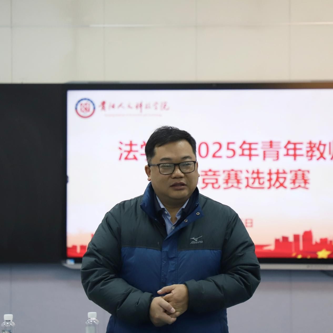为促进青年教师专业成长,提升教学能力与课堂质量,2025年11月25日下午,贵人文科技学院法学院在师德楼201智慧教室成功举办了青年教师教学竞赛选拔赛。本次竞赛由李毅博士主持,法学院全体专职教师参加,现场气氛热烈,学术氛围浓厚。