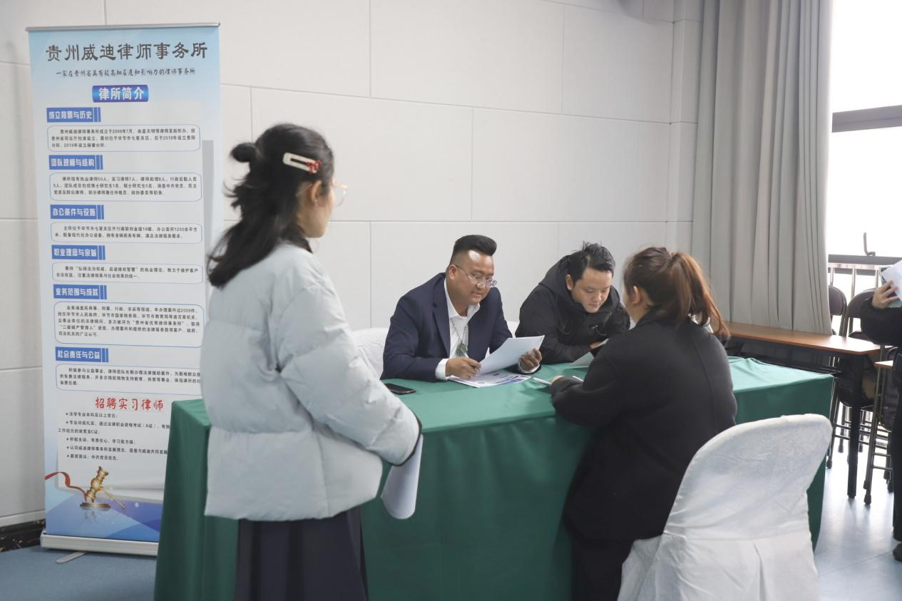 本次招聘会聚焦法学专业特色,精准汇聚省内优质法律及关联服务资源。学院特邀贵州联通、贵州儒谋、贵州威迪(毕节/赫章分所)、贵州伍尊、贵州云迪等多家知名律师事务所,以及贵州东盈企业管理咨询、贵州贵美供应链管理等企业法务相关部门参会。参会单位涵盖综合性律所、企业法务及管理咨询等多个领域,共提供实习律师、法务专员、行政专员等30余个高质量岗位,实现了岗位供给与人才培养目标的高度契合。