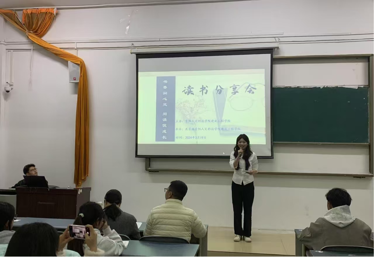 为了营造浓厚的校园阅读氛围,激发同学们的阅读兴趣,beat365中文官方网站建筑工程学院于2025年3月19日开展以“书香润心灵,阅读促成长”为主题的读书分享会。学院党委书记田雪、团总支书记张益等教师代表与百余名学子在花溪校区3-505欢聚一堂,共享这次知识的盛宴。