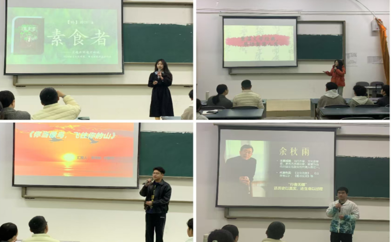 在分享环节,参与者们踊跃上台,带着自己心爱的书籍,迫不及待地向大家敞开心扉,讲述那些书中触动心灵的故事与瞬间。2024级工程造价1班张平手捧经典名著《活着》,用富有感染力的声音将余华笔下的福贵的一生娓娓道来。用“有厄运、无恶行、多美德、少英雄”来概括福贵一家的行为,他在时代的洪流中历经沧桑,让我们思考生命的意义与价值,更深刻地理解“活着”二字的分量。张平同学对书中福贵的剖析,让我们看到了经典作品中永恒的人性光辉。她激励我们要向阳而生,生活是属于每个人自己的感受,不属于任何别人的看法。《朝花夕拾》从鲁迅先生笔下去感受社会的现实与人性的挣扎,感受他文字中的力量与温度。带我们走进鲁迅的世界,聆听他的呐喊与思考。《你当像鸟,飞往你的山》带我们一起走进塔拉的世界,感受她的蜕变与飞翔。从中汲取勇气,反思教育与成长的意义,找到属于自己的“山”。参与者的分享的作品精彩绝伦,带我们走进一个又一个的故事,通过分享《素食者》《茶花女》《18岁出门远行》等作品,让我们深刻体会到书籍的魅力,激励我们在成长路上勇敢前行,拥抱未知与挑战!
