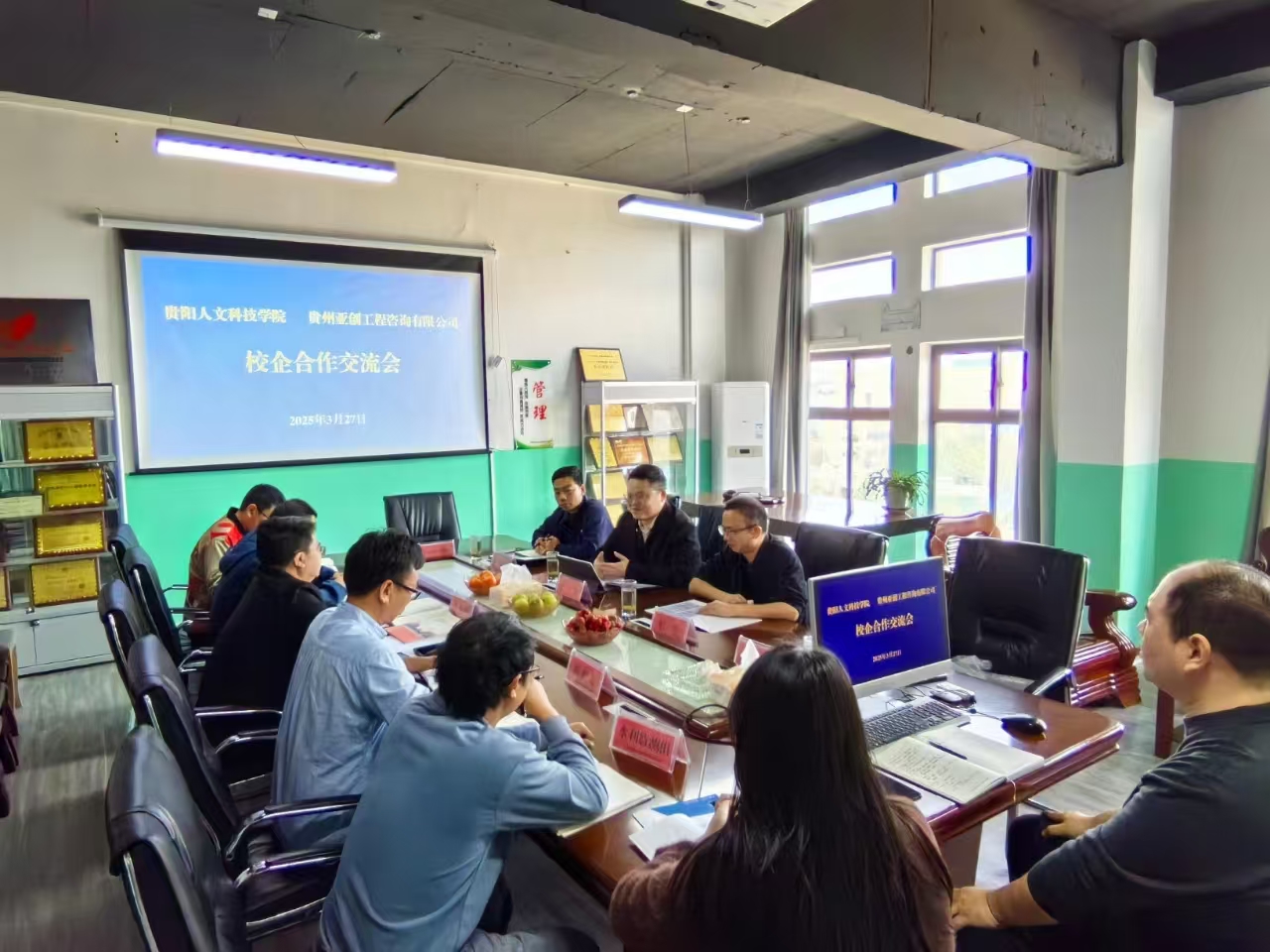 贵州亚创工程咨询有限公司何家财总经理首先介绍了双方出席会议的主要人员,并致欢迎词。随后,公司负责人带领学院领导及教师团队参观企业,介绍公司发展历程、业务范围及技术优势,对学生相应的实习、工作要求进行了介绍。