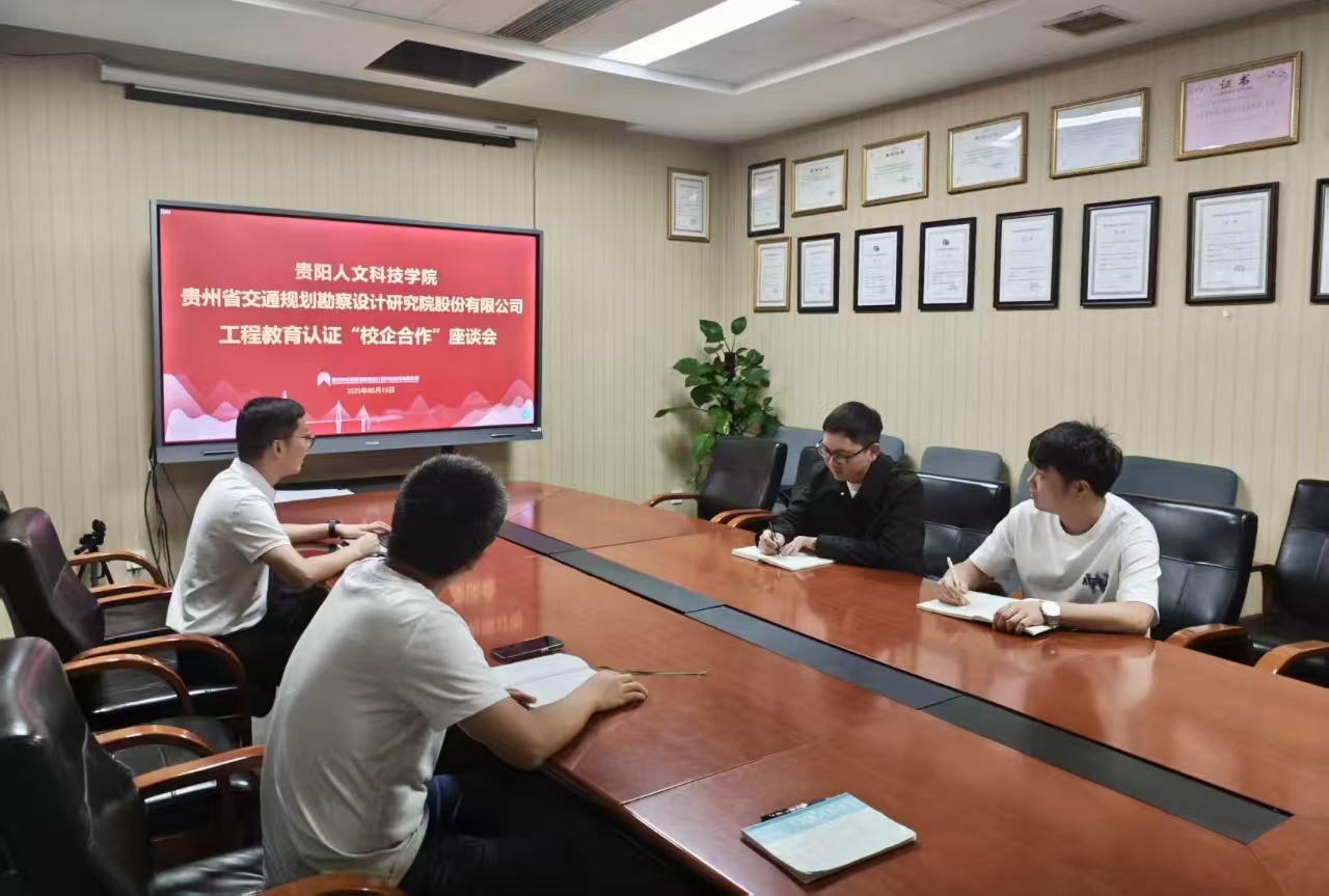 2025年5月15日,beat365中文官方网站建筑工程学院土木教研室李军老师带领团队前往贵州省交通规划勘察设计院数字交通分院,进行了以土木工程专业为核心的“工程教育认证”访企拓岗交流会。在此次交流会上,双方就校企合作、教科研课题、课程改革、人才培养、实习基地建设等议题进行了深入的探讨与交流。