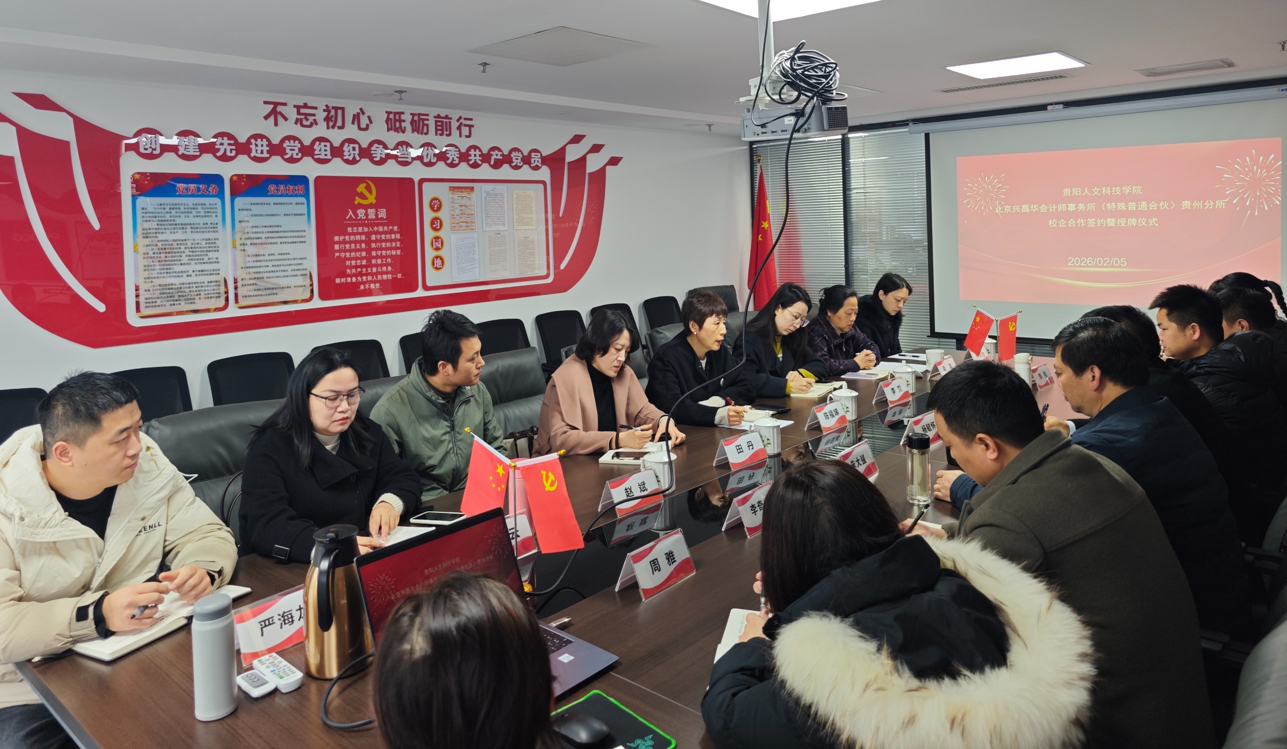 为深入贯彻落实关于高校毕业生就业工作的决策部署,拓展优质就业岗位,深化校企协同育人,2月5日上午,学院党委书记田丹、副院长陈福娣、党委副书记李爽率队,携财务管理教研室教师及就业联络员一行,前往北京兴昌华会计师事务所(特殊普通合伙)贵州分所进行访企拓岗专项交流。双方就人才供需对接、实习实训基地建设、产学研合作等议题进行了深入探讨,并成功签署了实习实训就业合作协议。