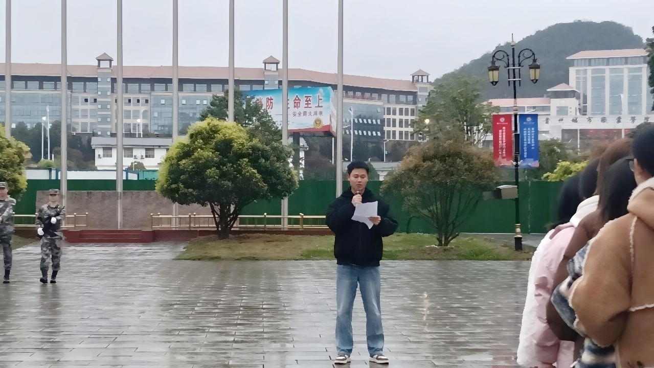 学生代表杨慧婷同学作国旗下讲话。她认为,作为新时代青年,虽无需奔赴沙场、止戈息战,但更应心怀家国、守望正义,把对和平的珍视化作刻苦学习的不竭动力,把对祖国的热爱化为砥砺前行的坚定勇气。要以青春之我、奋斗之我,努力成长为有理想、有本领、有担当的新时代青年,用知识武装头脑,用品格涵养情怀,用实力捍卫尊严,以实际行动守护祖国长治久安。