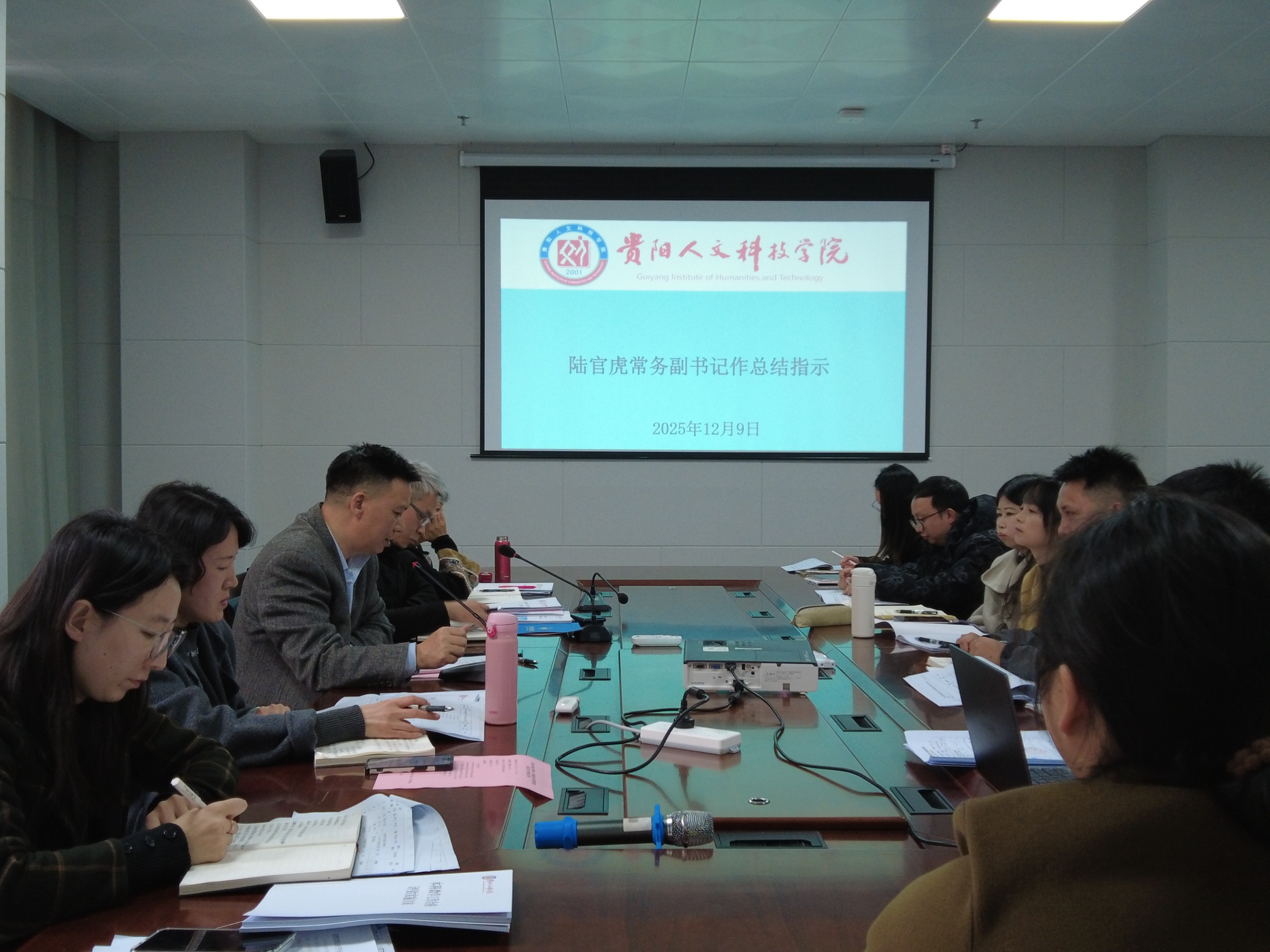 学校常务副书记陆官虎在听取汇报后作总结讲话,对经济与管理学院前期评建准备工作给予肯定,并对下一阶段工作提出明确要求:第一,要统一思想,做好苦干准备。全体教职工要充分认识本科教学合格评估对于学校及学院生存发展的极端重要性,切实增强使命感、责任感和紧迫感,摒弃侥幸心理,树立攻坚克难的决心,发扬连续作战的作风。第二,要履职尽责,主动担当作为。每位教职工不仅要高质量完成职责范围内的“规定动作”,更要以主人翁的姿态,主动发现教学、管理、服务各环节中存在的问题与短板,积极思考,主动协调,推动问题有效解决。第三,要加快节奏,紧密协同配合。必须紧跟学校整体评建工作步伐,倒排工期,挂图作战,加快各项工作节奏。学院内部要加强协同,各科室、各教研室要紧密配合,形成全院一盘棋的工作格局,确保与学校各阶段、各层级的工作部署同频共振,无缝衔接。