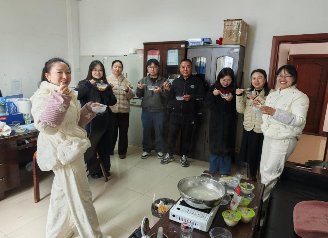特别准备的甜酒煮鸡蛋成为了活动的“暖场王”。在初春乍暖还寒时节,一碗热气腾腾的甜酒冲蛋下肚,不仅驱散了寒意,更暖到了心坎里。老师们纷纷表示,虽然没有盛大的布置,但这一锅锅亲手煮出的美味,让大家真切感受到了大家庭的人情味和烟火气,节日的氛围反而更加真实、浓厚。