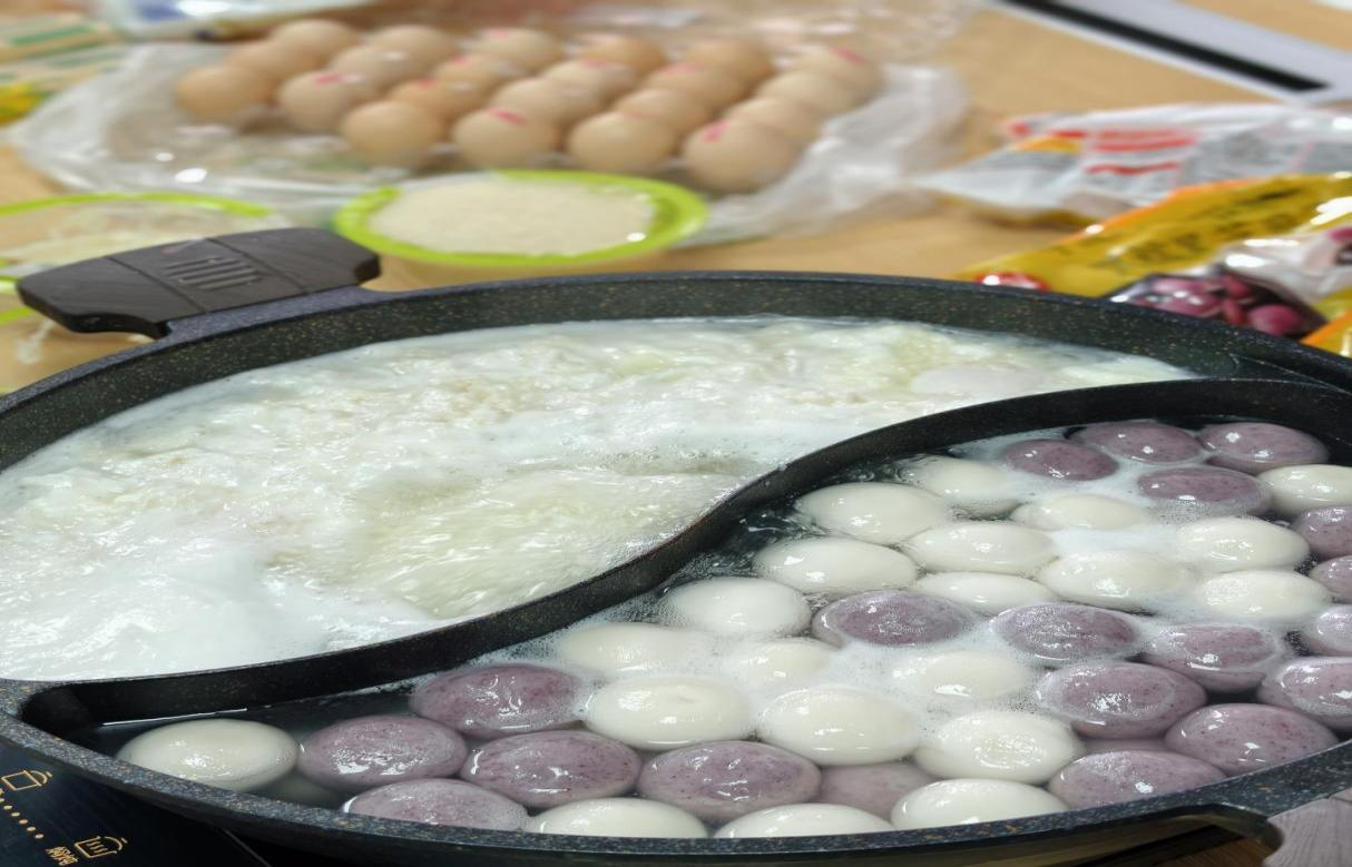 中午时分,在两个校区同时升腾起温暖的烟火气。老师们架锅煮水,将提前备好的汤圆、甜酒、鸡蛋一一入锅。随着沸水翻滚,雪白的汤圆逐渐浮起,甜酒与鸡蛋的醇香弥漫开来,现场暖意融融、笑语不断。