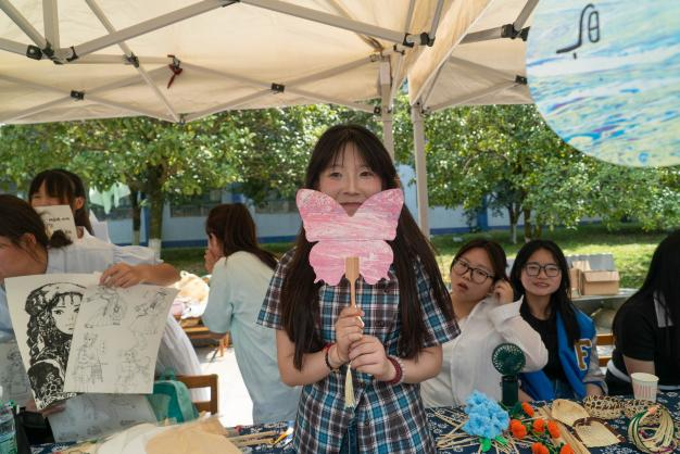 在手工艺品与剪纸区,窗花剪纸、香包制作、非遗漆扇、银饰发钗……通过互动制作,在指尖上体验非遗技艺的匠心传承与中华文明非遗文化的惊艳绝伦。在民族艺术展区,苍狼图腾在皮宣上踏雪而行,苗岭棋枰落子时惊起银雀,羌笛陀螺回旋出月晕的涟漪,那些凝固在黑白之间的民族文化密码,在时光褶皱里书写着各民族艺术永不褪色的盟约。集市现场欢声笑语不断,同学们纷纷表示:“不仅尝到了美食,更读懂了每一件物品背后的文化故事。”