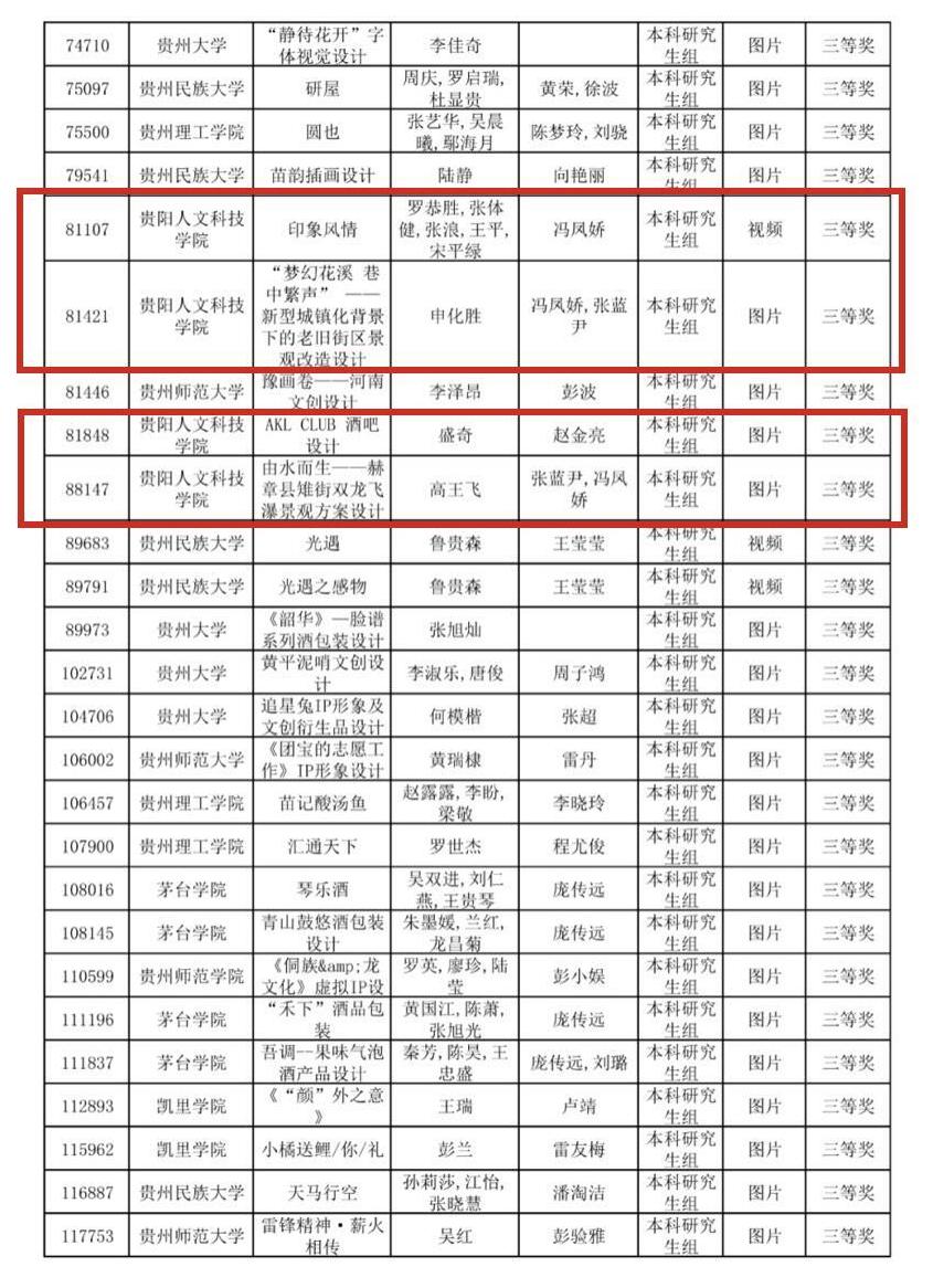 5月7日,第七届米兰设计周高校设计展非命题赛道贵州赛区获奖名单揭晓,经过前期积极筹备,体艺师生在本次比赛中斩获多个奖项,其中一等奖2项、二等奖3项,三等奖7项。