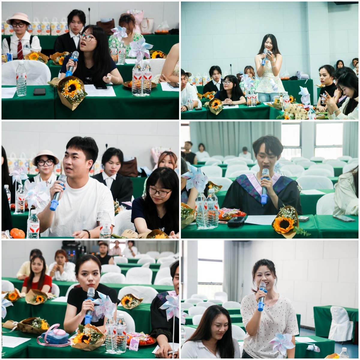 会议最后,学院院长带领在座的老师为毕业生送去临别礼物,祝福他们顺利毕业、前程似锦,也希望他们毕业后与母校保持联系、常回家看看。