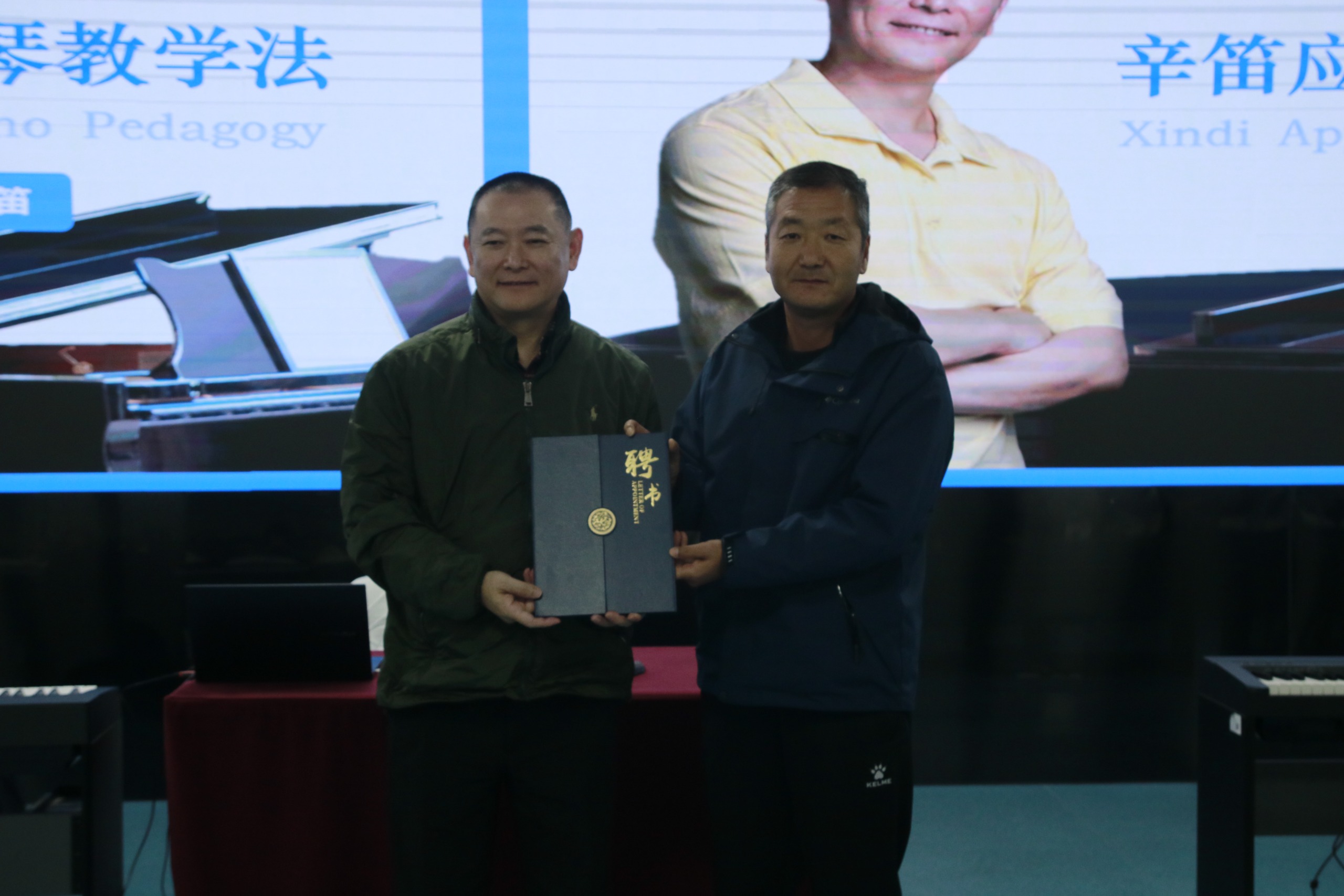 授聘仪式上,学院院长王雪为辛笛教授颁发客座教授证书。这一举措不仅标志着学校音乐学科建设迈入新阶段,更将借助辛笛教授的专业积淀与行业资源,在教学理念革新、课程体系优化、实践模式创新等方面实现突破,为音乐学科发展注入强劲动力。