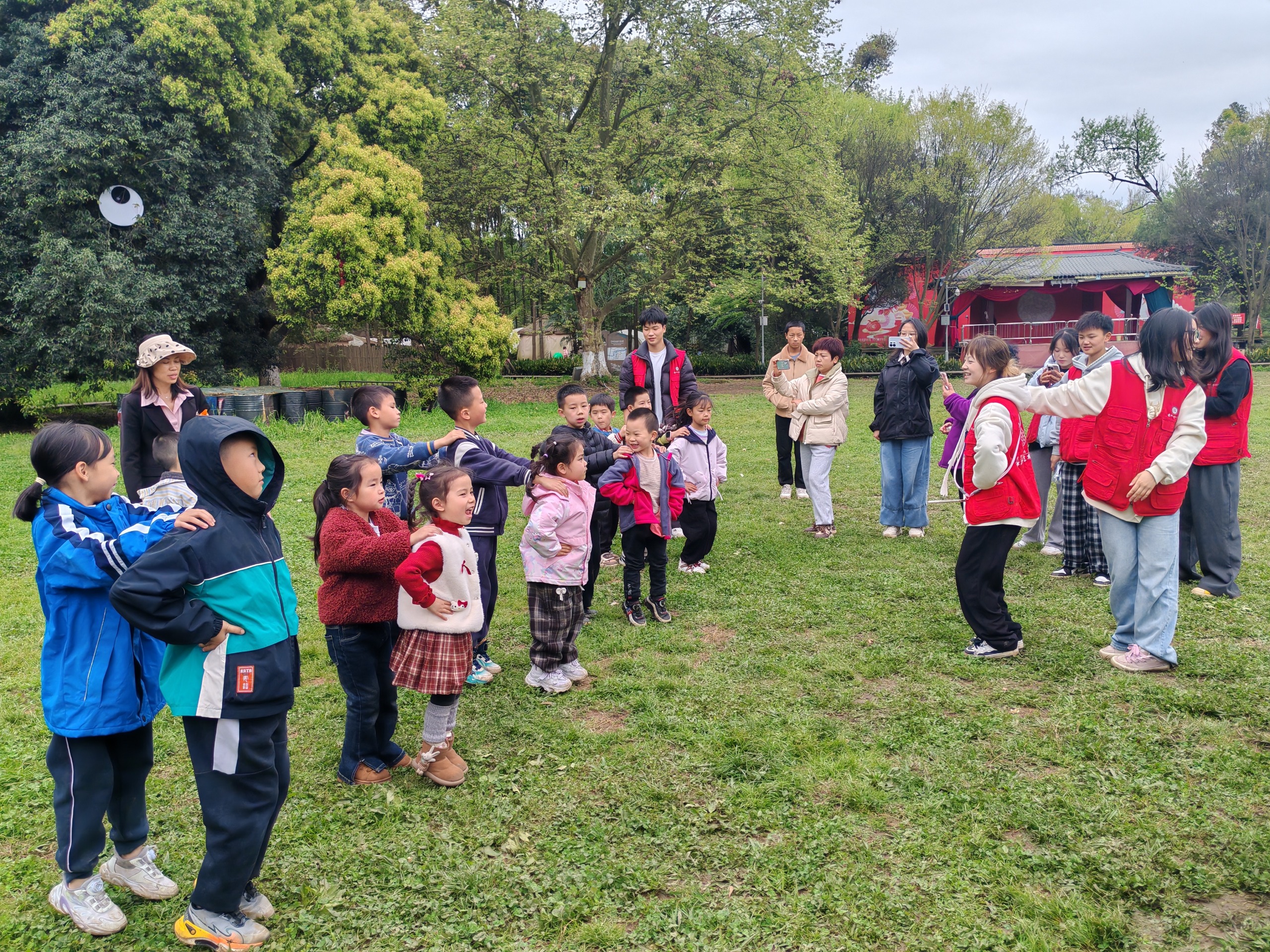 活动中,志愿者与社区工作人员带领小朋友徒步前往花溪公园大草坪,沿途引导孩子们化身“环保小卫士”,捡拾路面及绿化带垃圾,以实际行动践行绿色环保理念。到达场地后,“桃花朵朵开”破冰游戏迅速点燃现场氛围,让孩子们快速熟络。随后的安全知识小课堂以“宣讲+有奖问答”形式展开,志愿者围绕清明节重点讲解文明祭祀、森林防火知识,倡导鲜花祭祀、严禁带火种进山,号召孩子们带动家长守护绿水青山。此外,活动还同步开展未成年人保护、垃圾分类、防溺水等安全宣传,孩子们踊跃互动、积极抢答。