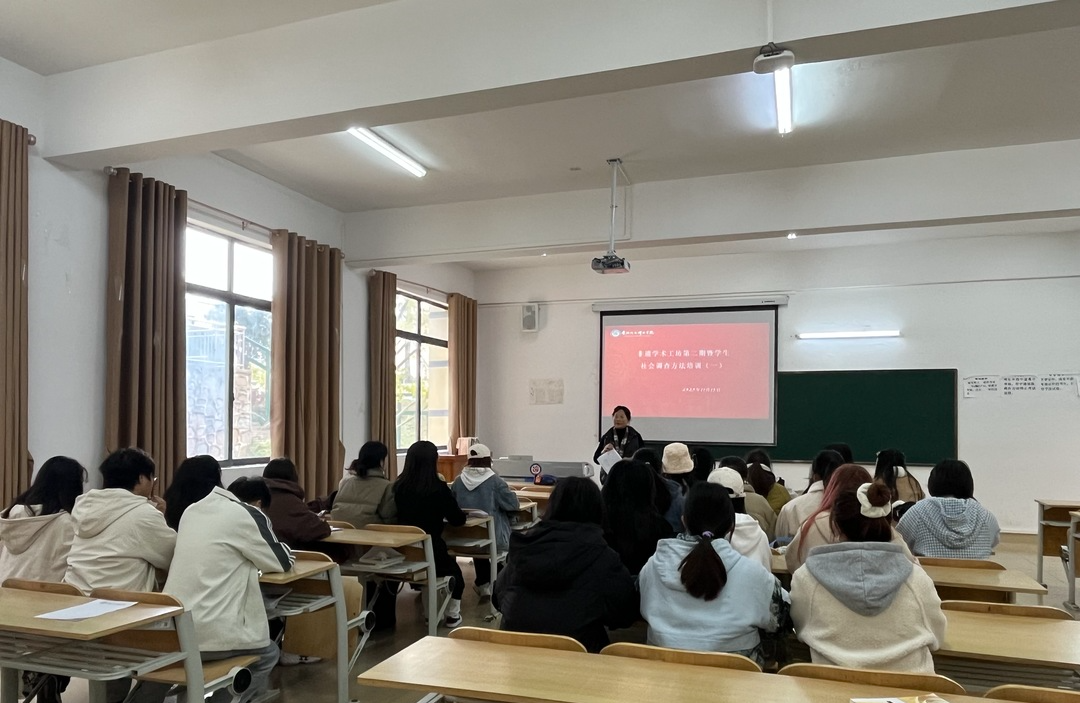 为了提升学生对非遗的专业认知,培养学生科学研究的基本素养,11月13日,我院在大学城校区举办“非遗学术工坊第二期暨学生社会调查方法培训(一)”专题培训。本次培训特邀beat365学术委员会主任、博士生导师吴晓萍教授担任主讲,非遗教研室付敏老师主持活动,学院非物质文化遗产保护及旅游管理专业学生参加培训。