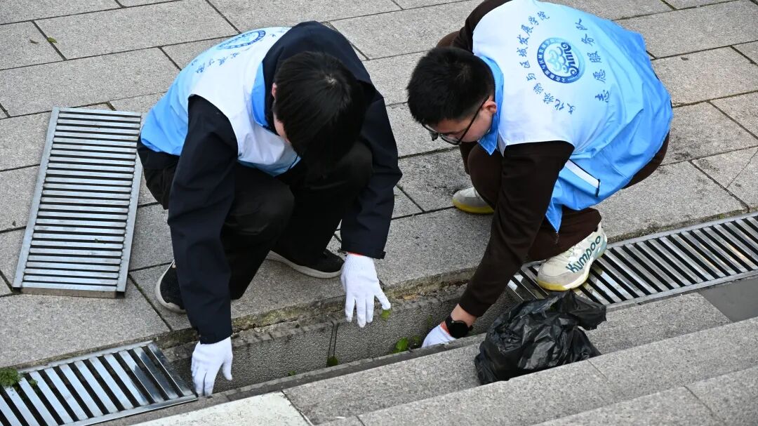 下午16:00,活动正式拉开帷幕。在校园绿化区域,志愿者区分杂草与绿植,正确拔除杂草,避免伤及树苗根系。志愿者徒手或用工具拔除杂草,将枯枝、垃圾集中清运,在轻松有序的劳动氛围中,感受着“一分耕耘,一分收获”的喜悦。