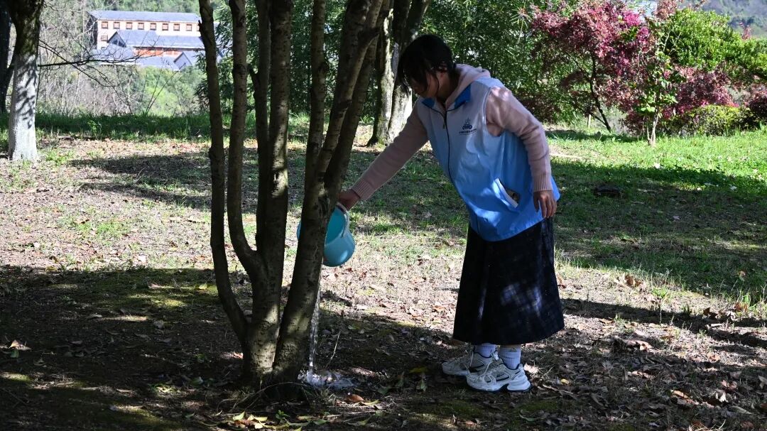 随后,志愿者们有序前往植树区域,对校园绿植进行统一浇水养护。志愿者们化身“护绿小卫士”,引导同学文明参与,维护现场秩序,讲解简单护绿常识。大家分工协作,用涓涓细流滋养着每一株绿植,共同守护着校园的春日生机。