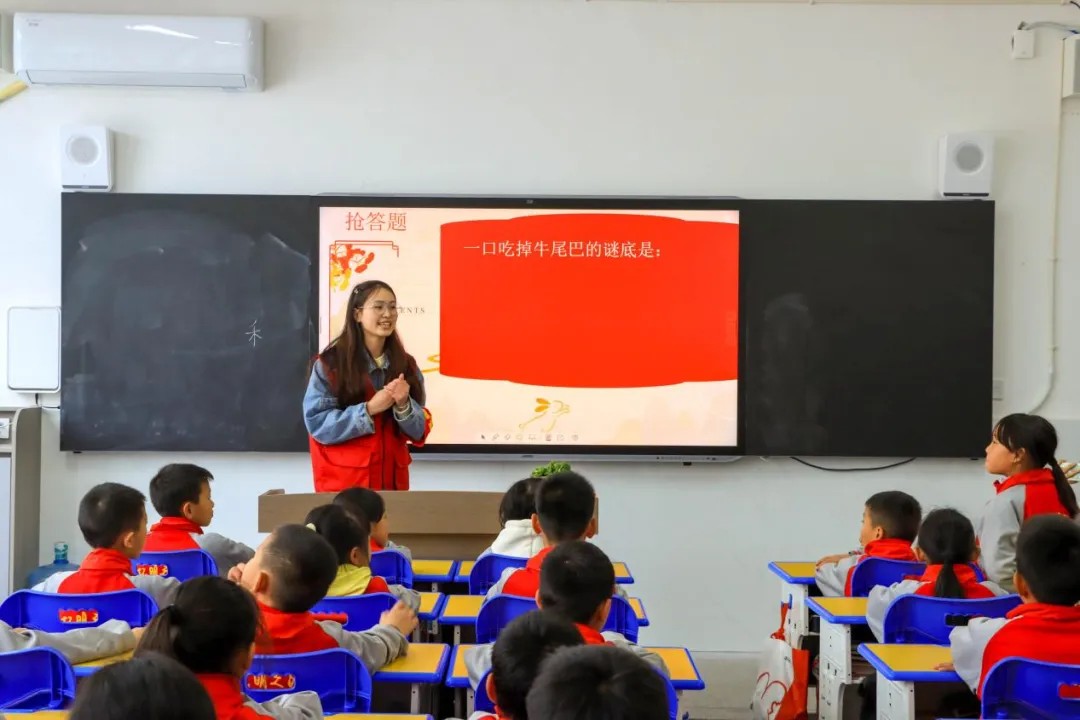 在普通话教学课堂中,团队精心设计三大环节:一是绕口令挑战,团队成员示范指导,帮助学生掌握发音,感受普通话的韵律;二是猜字谜,团队成员巧妙地对汉字结构进行深入解析,从而加深学生对汉字丰富内涵的理解与认知;三是宋词吟唱,选取《水调歌头・明月几时有》等经典篇目配以优美旋律,让学生在吟唱中体会宋词意境。此外,团队成员也在课间巧妙穿插趣味游戏,让学生们在紧张的学习过程中得以放松身心,舒缓疲惫,进一步增进学生彼此之间的友谊,营造和谐融洽的氛围。