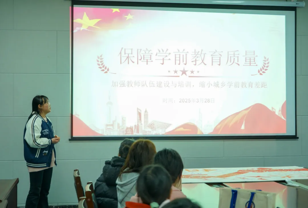 专业“两会”巧宣讲环节更是亮点纷呈。三位学前教育的同志围绕“两会”中的有关学前教育发展的相关主题进行宣讲。宣讲内容既精炼又突出重点,充分展现支部成员们深厚的政治素养和卓越的专业能力。