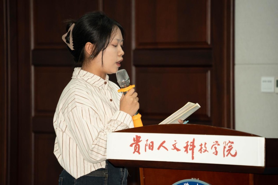随后进入第27届全国推广普通话宣传周闭幕式环节。首先由文学与新闻传播学院组织员蔡国兴老师对本次推普工作进行汇报总结,他指出,为了确保活动的顺利开展,我们提前进行了充分的筹备工作。通过校媒体、张贴海报、标语征集等多种渠道进行广泛宣传,激发了全校师生的参与热情。活动期间,我们围绕“加大推普力度,筑牢强国语言基石”的主题,精心设计了多项活动。通过一系列丰富多彩的活动,不仅提高了全校师生的普通话水平,还增强了师生对国家通用语言文字的认知和使用。未来我们将继续总结经验教训,不断创新活动形式和内容,为推广普通话事业贡献更多力量。