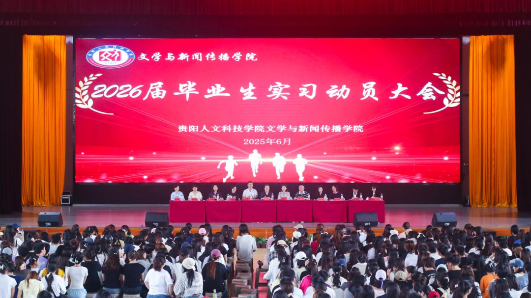 为全面部署2026届毕业生实习工作,明确实习要求,强化职业素养培养,文学与新闻传播学院于2025年6月20日在大学城校区大礼堂(体育馆)召开2026届毕业生实习动员大会。