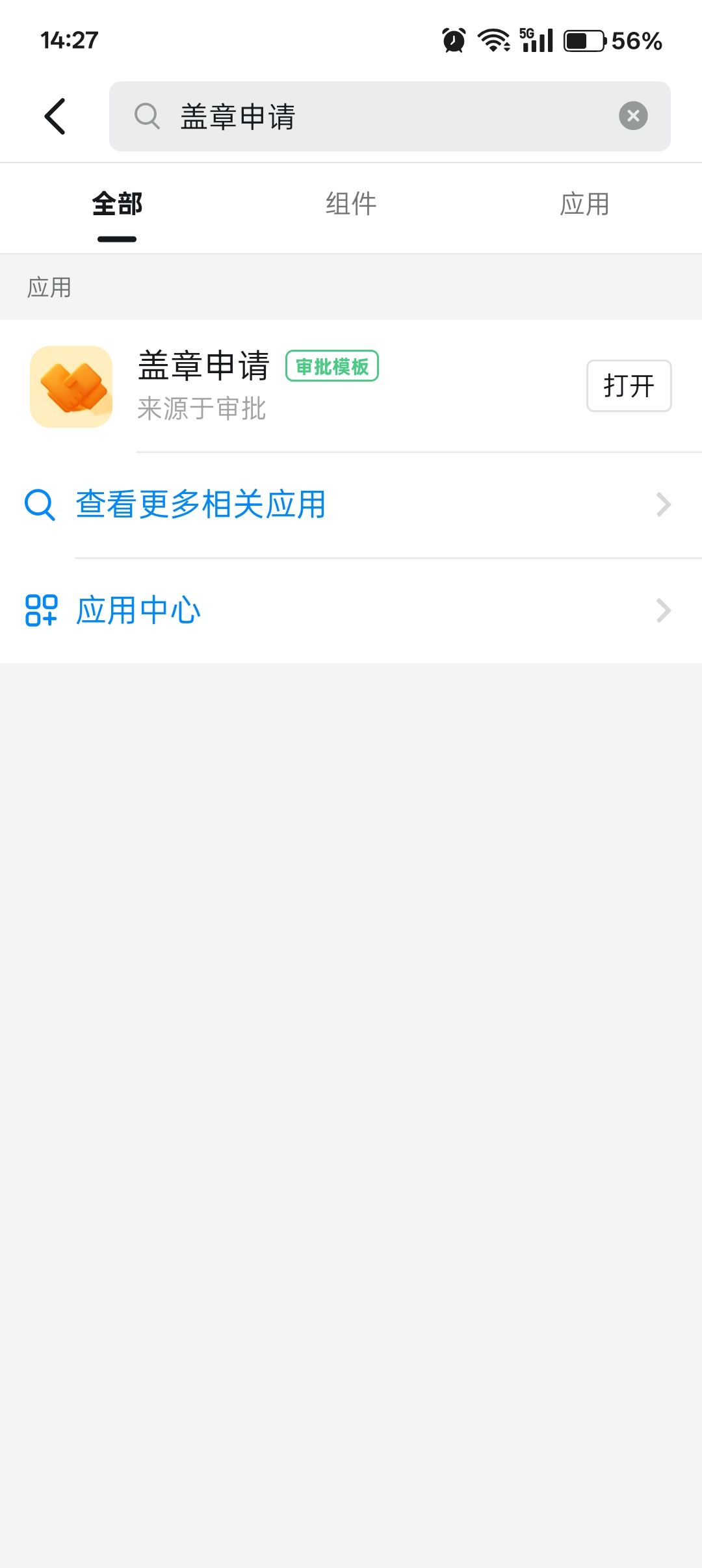 2搜索盖章申请,并打开该应用。