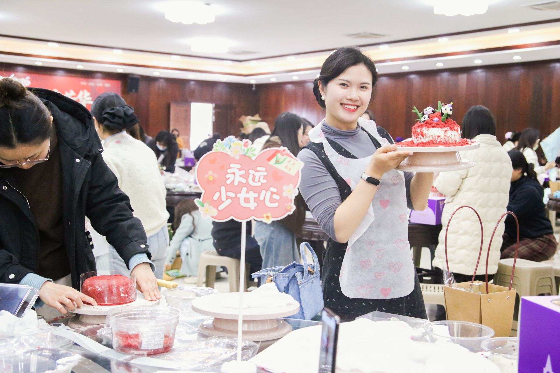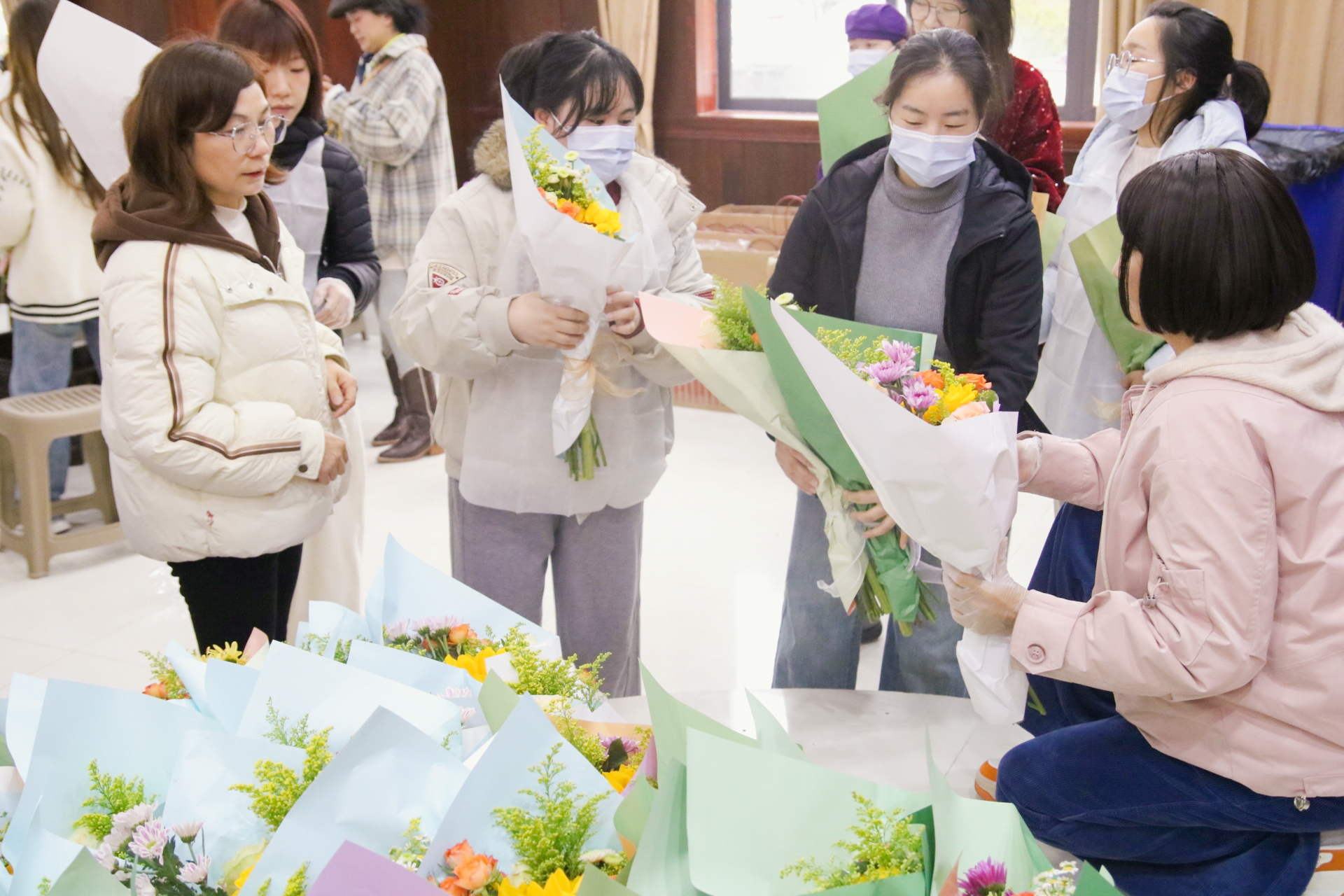 下午14时,工会及后勤处在教职工之家举办了蛋糕DIY与插花艺术体验活动。平日里在讲台上循循善诱的女教师们,此刻化身为生活艺术家。在奶油的香甜与鲜花的芬芳中,亲手制作了专属于自己的甜蜜与美丽,从而舒缓工作压力。女教职工们在活动中交流工作生活趣事,共同度过了一段惬意而美好的午后时光。