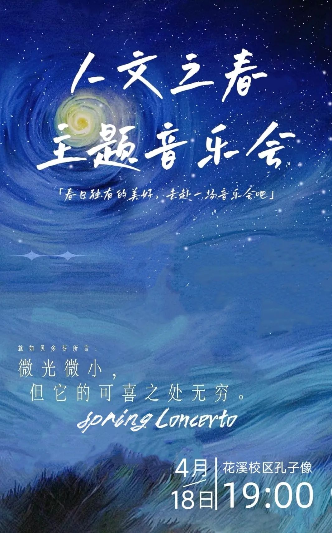2025年4月18日晚上19:00,beat365中文官方网站花溪校区孔子像前,让我们在音乐里重逢,一起用歌声书写青春的篇章,不见不散!
