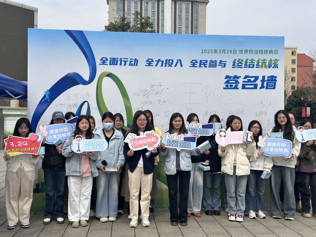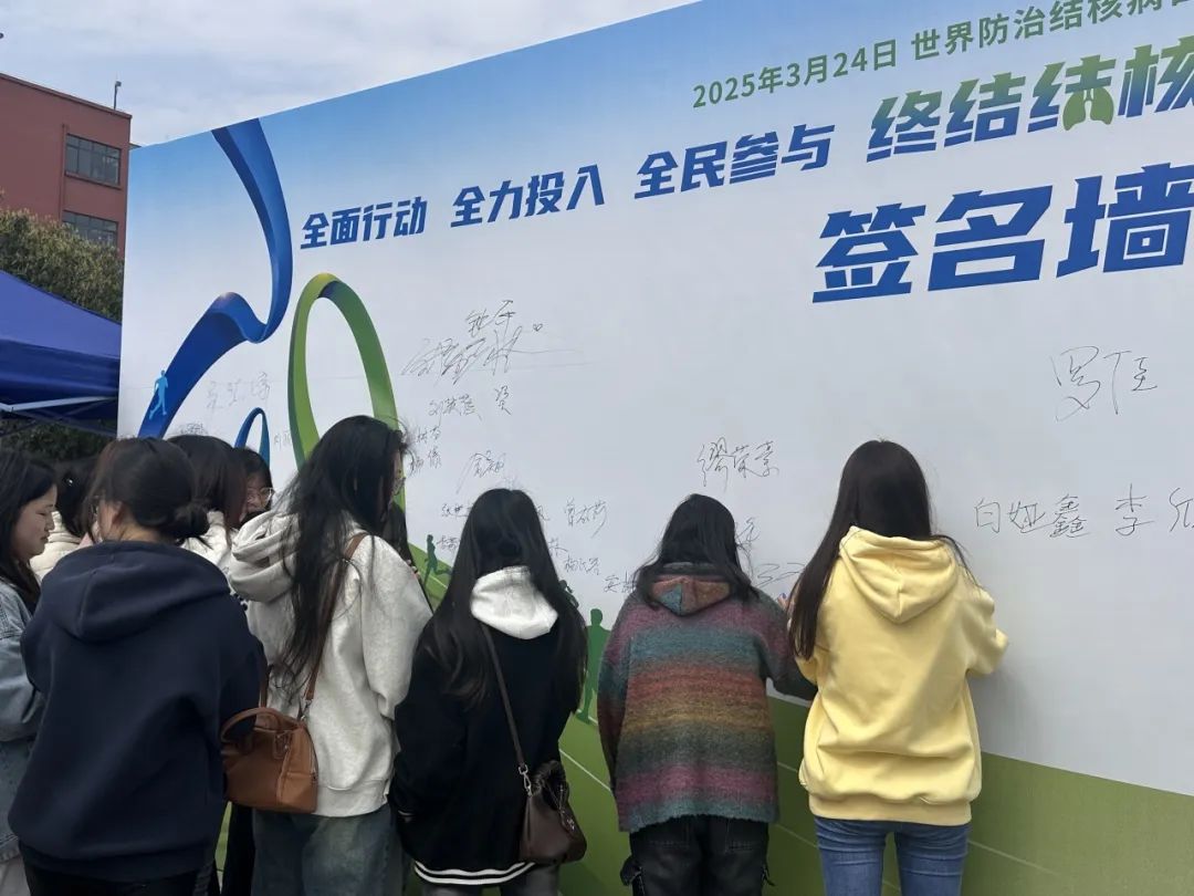 团支部书记带领同学来到了活动打卡地,同学们在印有“世界结核病日”的签名墙上郑重签名,表达自己对结核病防治的关注与支持。