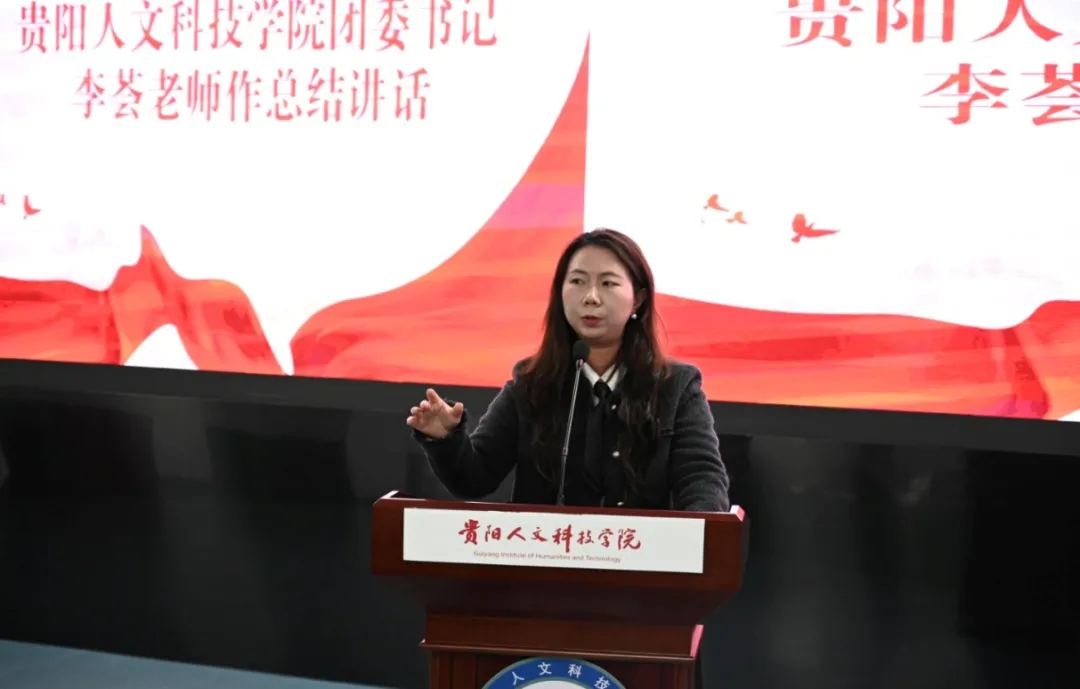 校团委书记李荟老师在总结讲话中,对本届青马班取得的丰硕成果给予高度评价,并对全体学员寄予殷切期望。李荟老师强调:“青马人不是一句口号,而是一种责任与行动”。希望在成长的道路上,大家面对困难,明白挑战是一时的,信念与坚持是永恒的。鼓励学员清楚认知到每个人都有独特的优势,将个人所长融入集体发展,在各自的岗位上发光发热。鼓励全体学员持续在理论学习中涵养底气、在社会实践中砥砺担当,真正成长为信仰坚定、能力突出、素质优良、作风过硬的青年学生骨干。