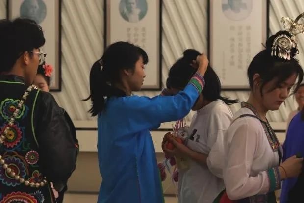 侗族的同学们邀请了贵州民族大学的同学一起合唱琵琶歌,侗族的“心心相印”表达的就是琵琶歌中对传统文化的保护和传承以及喜爱。