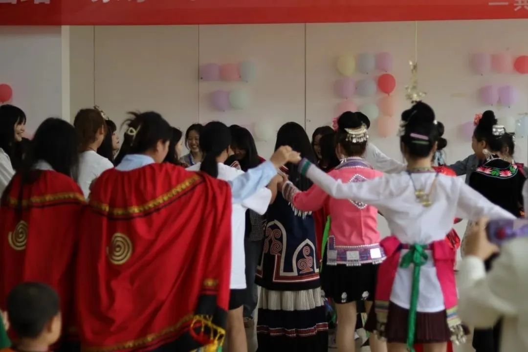 彝族的达体舞热情奔放,飘逸潇洒,融合了彝族人民劳动智慧的结晶,体现了彝族人民的勤劳和智慧。彝协青年男女邀请在场的同学们与他们一同体验彝族达体舞,感受彝族文化,大家手手相牵,载歌载舞。