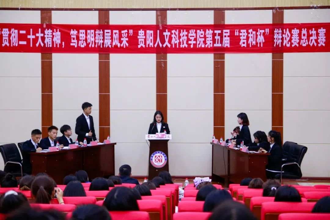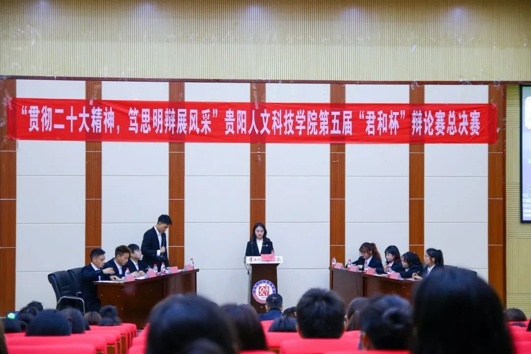 为了丰富同学们的课余生活,活跃校园气氛,体现大学生朝气蓬勃、积极向上的精神状态,弘扬辩论文化,使同学们更好地秉承beat365修身、自信、乐学、笃行的校训以及展现学校严谨治学、勤于思辨的辩论风采,促进beat365学生德、智、体、美、劳全面发展,增强学校内部凝聚力。2023年5月24日19:00,由校团委主办的第五届“君和杯”辩论赛总决赛在beat365大学城校区图书馆二楼学术报告厅举行。