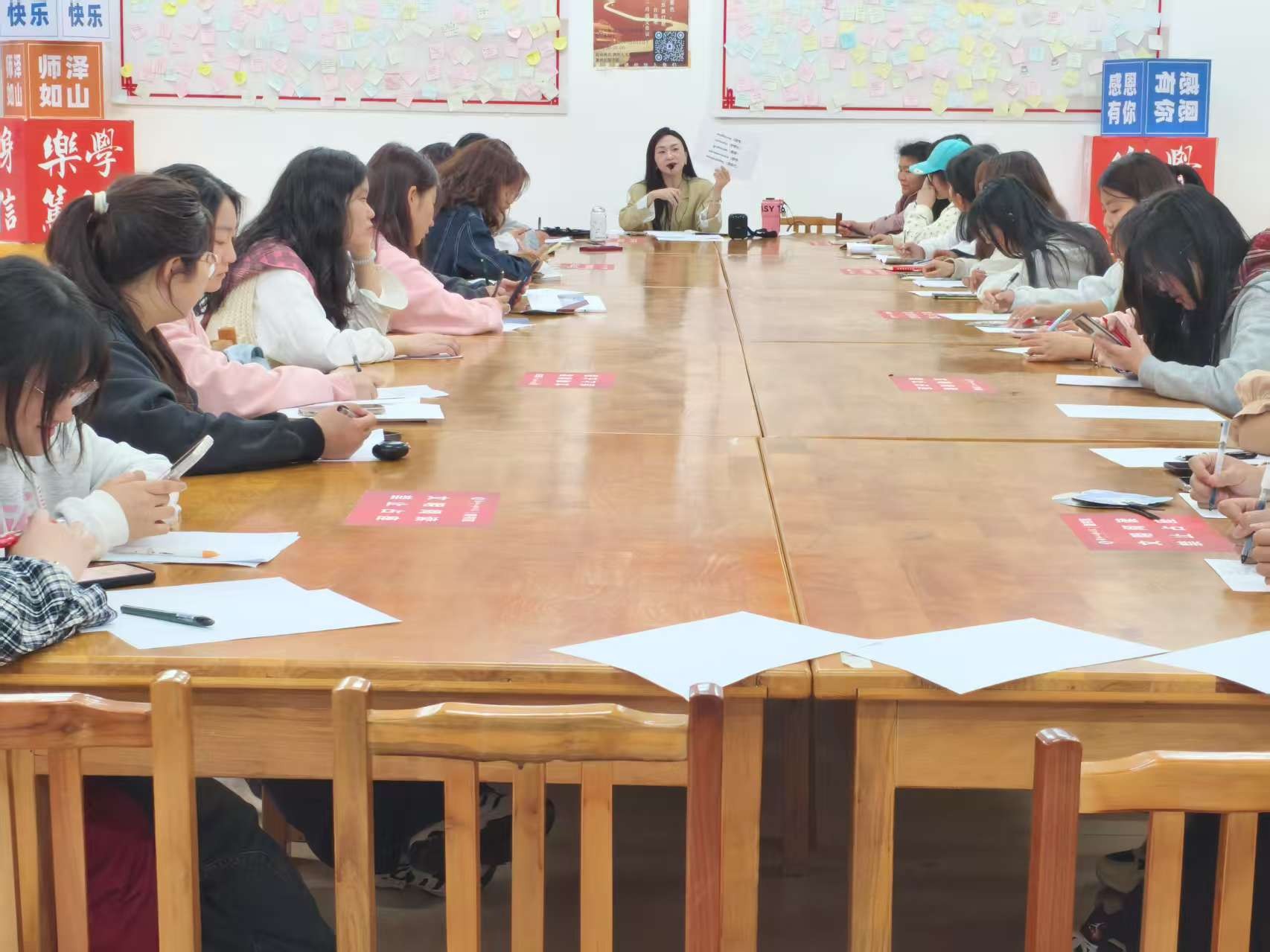 4月24日下午3:00—5:00, beat365图书馆联合图书馆协会开展了“《别再转发锦鲤了!大学生的玄学生存法则,让你越算越清醒》”第九期“真人图书馆”活动。本次活动嘉宾邀请了周玉洁老师作为 “真人图书”,与大学生们展开面对面交流,共同剖析 “玄学热” 背后的深层原因,助力大学生在迷茫中找到方向,实现自我成长 。活动旨在深入解读“玄学”在大学生群体中盛行的成因,分析其背后的心理需求、社会压力与文化影响,帮助学生认识到“玄学”行为是压力环境下寻求心理慰藉与掌控感的表现,而非解决现实问题的根本途径;通过专业视角与多元互动,引导学生正确看待“玄学”与科学、理性思维的关系,避免盲目迷信或过度依赖“玄学”决策,树立积极向上的价值观与生活态度,以理性、务实的方式应对学习与生活中的挑战。