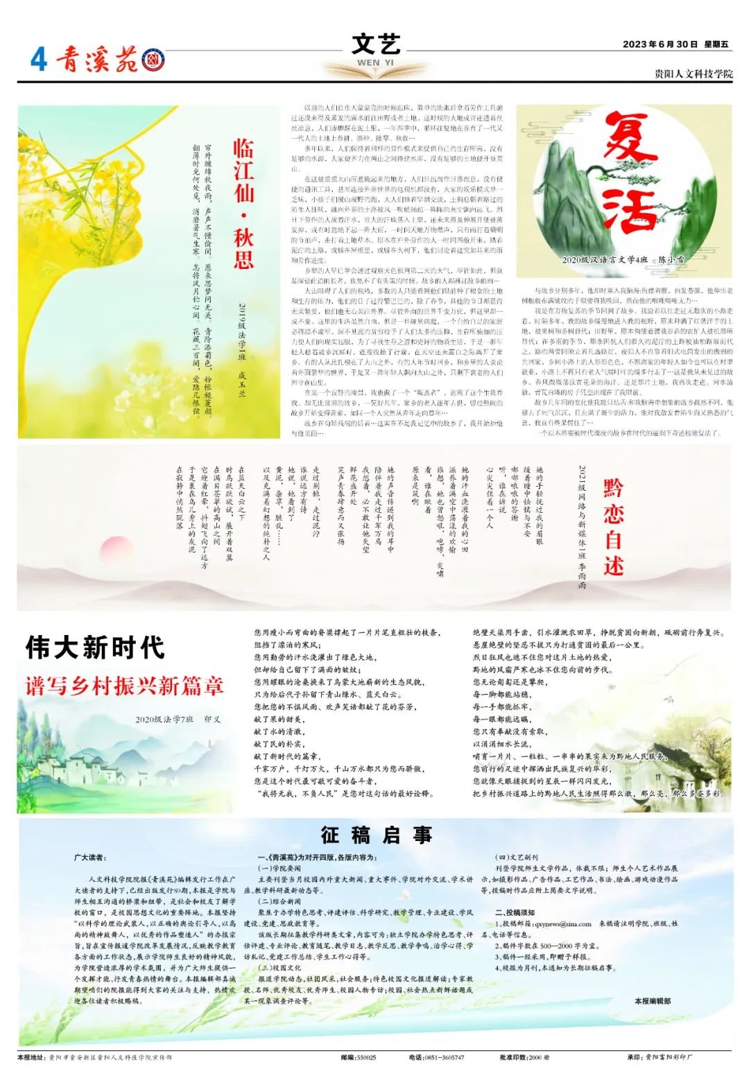 校报为月刊,本报长期征稿