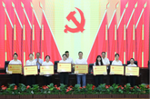 主席台就座领导为优秀共产党员颁奖