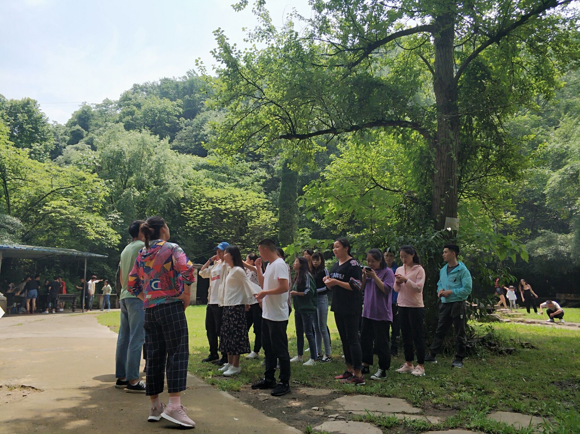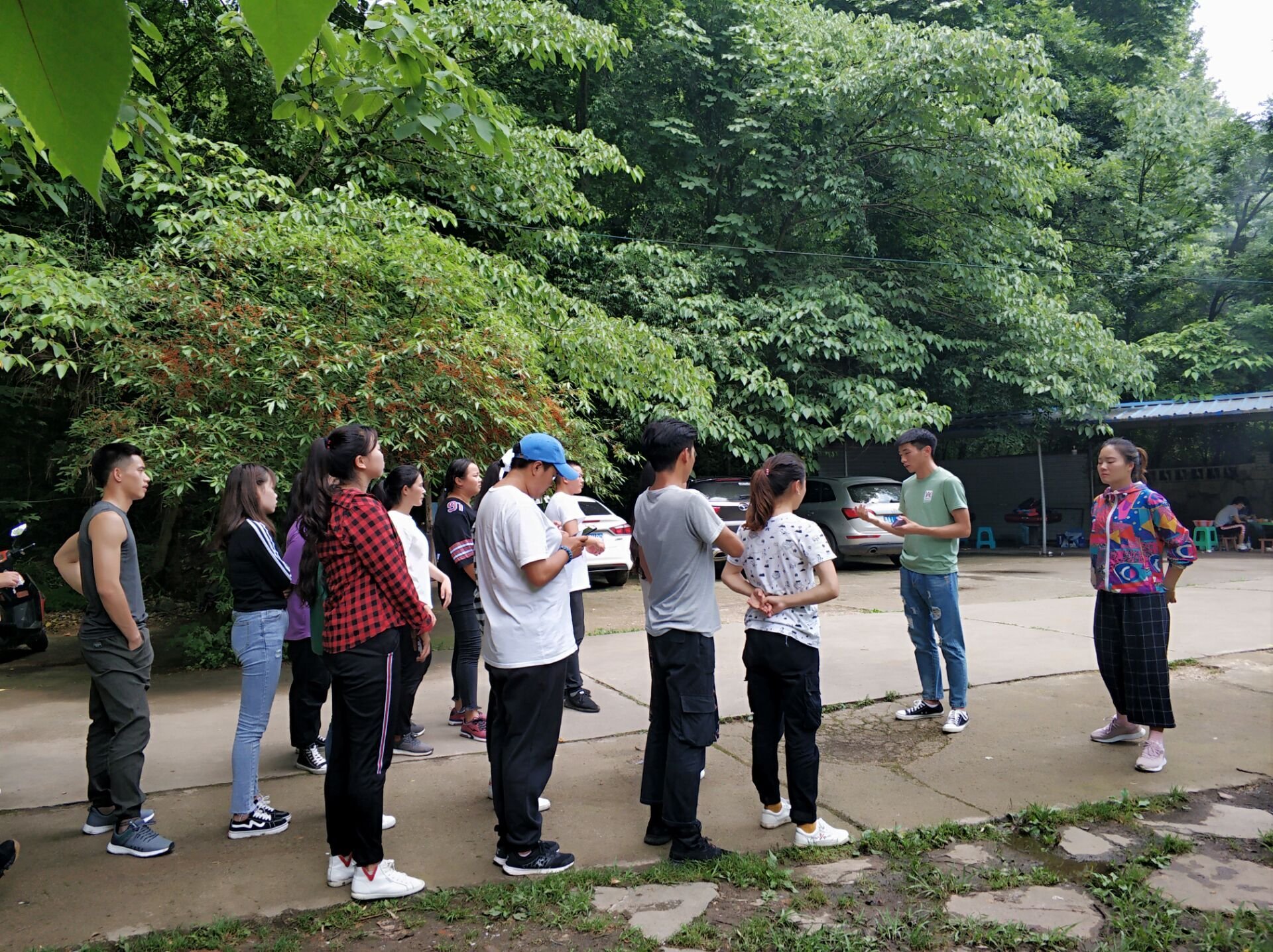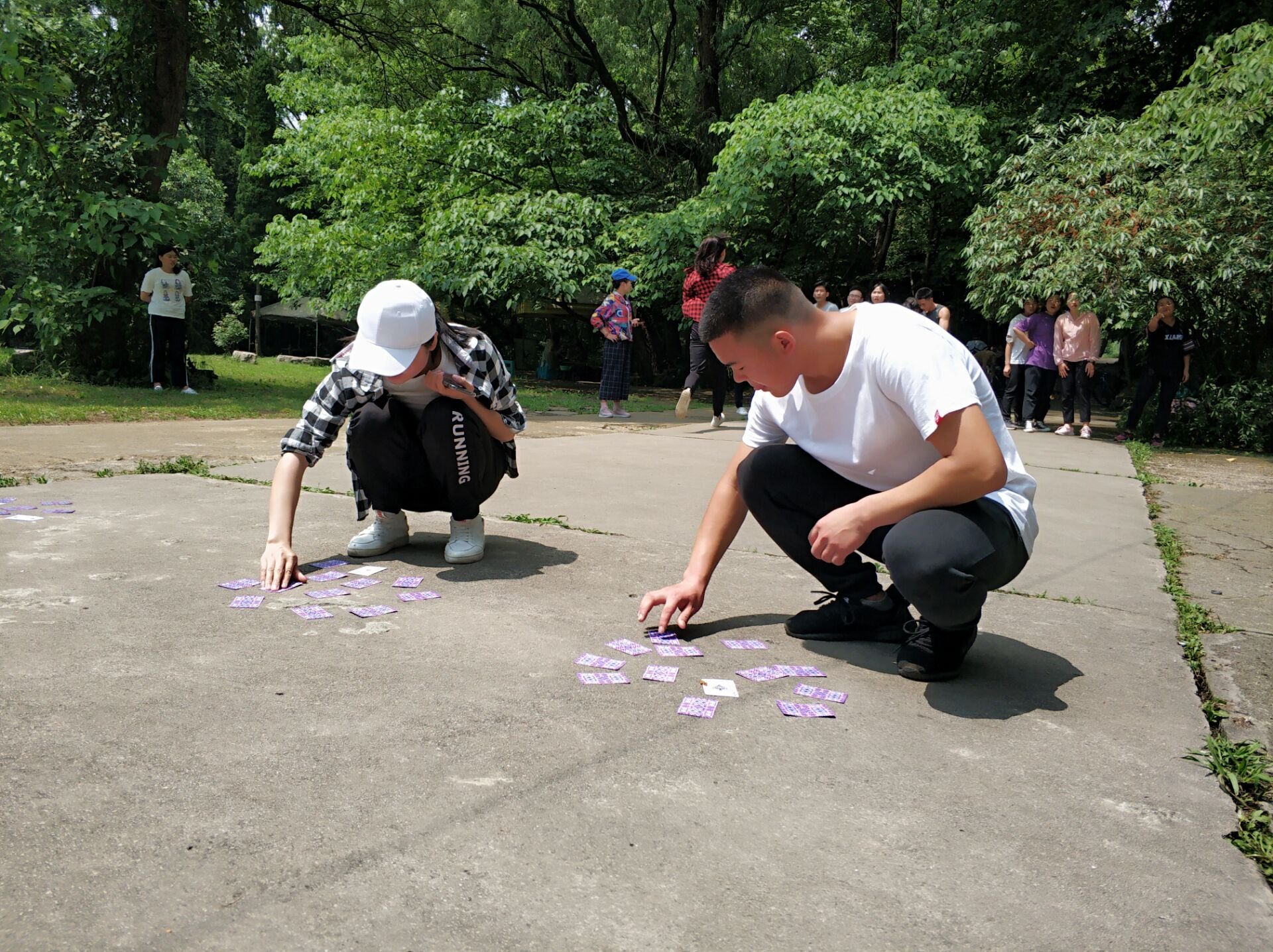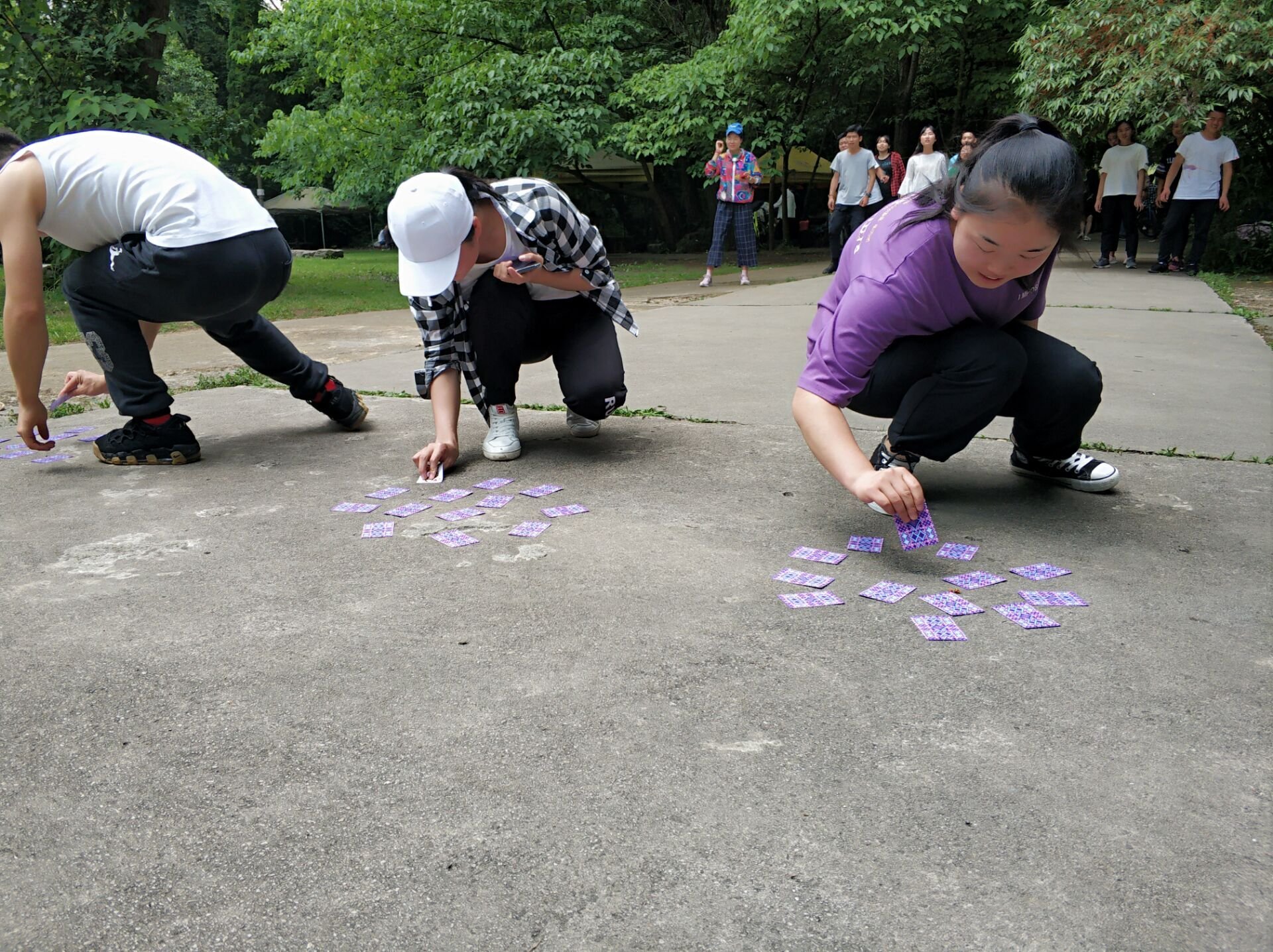 到达花溪带领大家做拓展活动,名叫密码解析,全体队员分成三队,前往目的地翻牌。