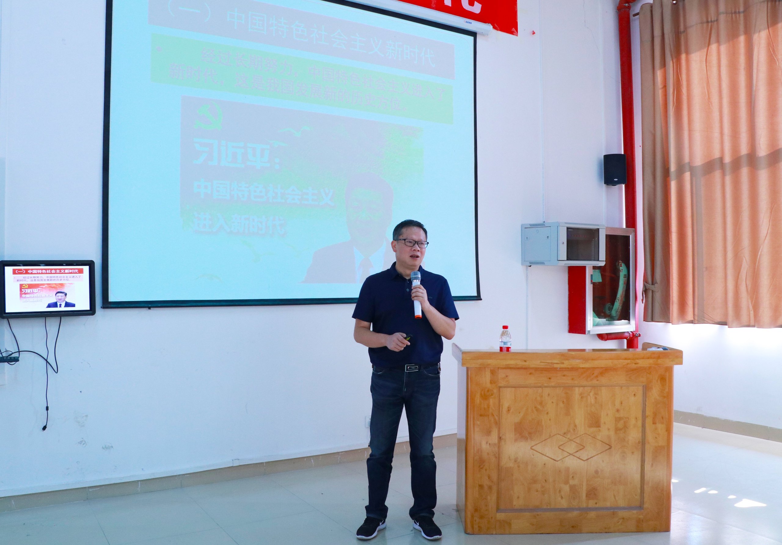 周俊执行校长以“什么是新时代”、“新时代的特征是什么”、“进入新时代意味着什么”为切入点,为同学们讲述了中国过去的屈辱历史与现在的辉煌成果,体现了党的新时代指导思想的重要地位。同时,也明确了指出新时代中国特色社会主义思想,是对马克思列宁主义、毛泽东思想、邓小平理论、“三个代表”重要思想、科学发展观的继承和发展,是马克思主义中国化最新成果,是党和人民实践经验和集体智慧的结晶,是中国特色社会主义理论体系的重要组成部分,是全党全国人民为实现中华民族伟大复兴而奋斗的行动指南,必须长期坚持并不断发展。“八个明确”概括了新时代中国特色社会主义思想的主要内容。