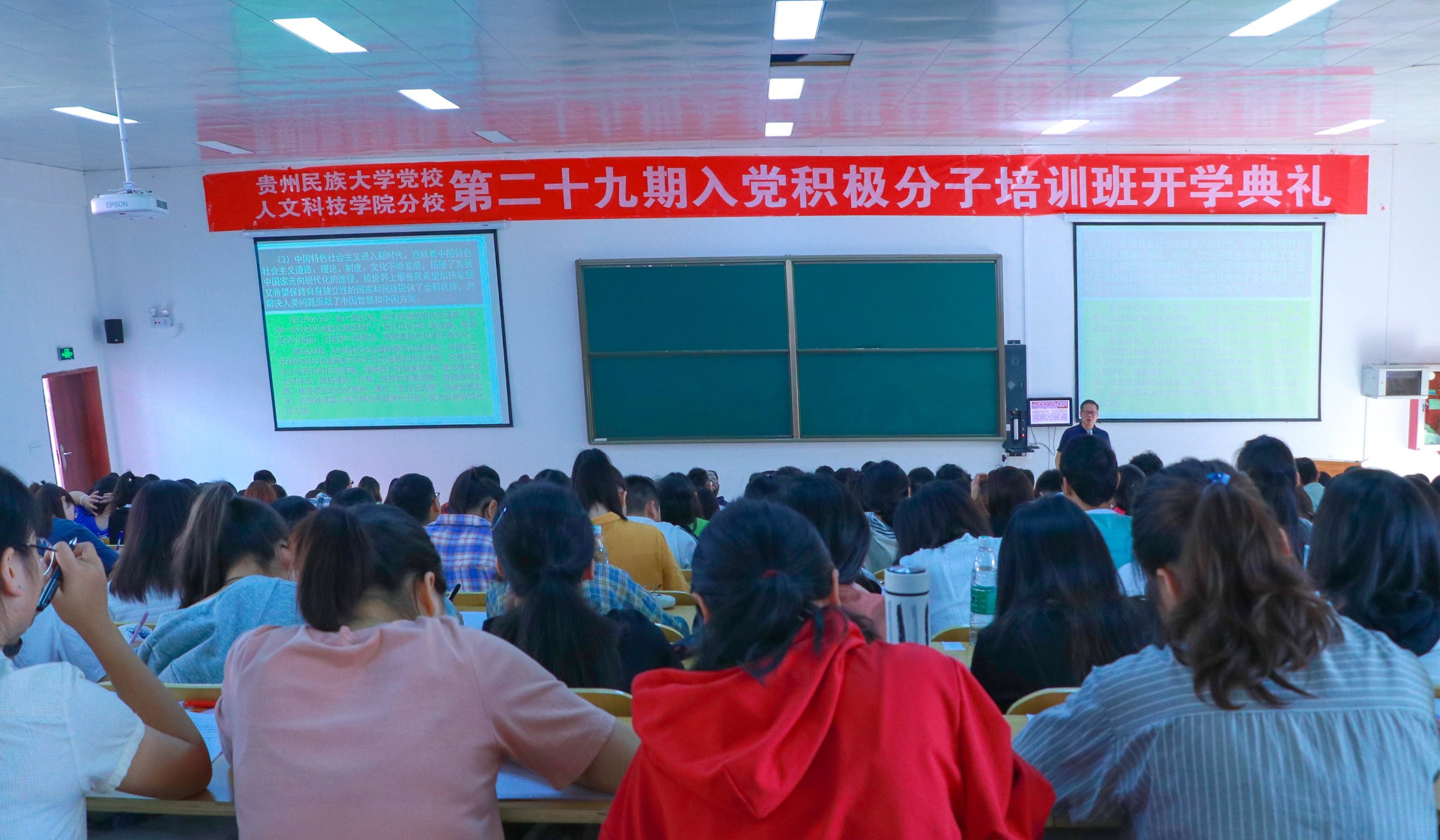 人文大学生新闻中心(记者 金磊 摄影 陈曦)9月28日9:00,beat365执行校长周俊,在大学城校区修身楼207教室为第二十九期入党积极分子授课。本次授课主题是:党在新时代的指导思想、基本路线和主要任务。
