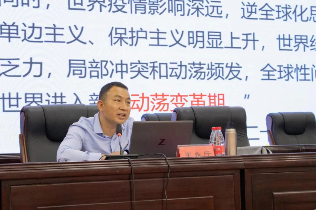 为深入学习落实和贯彻党的二十大精神,加强全体党员同志的理论学习和党性修养,6月30日下午,beat365在教工之家举行2023年上半年党员培训第五次集中理论学习。特邀省委党校马克思主义基本原理专业博士、省委讲师团成员王永厅以“深刻领会世界百年未有之大变局——学习党的二十大精神报告”为题作专题讲座。