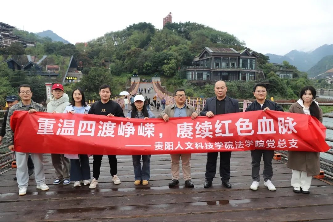 11月24日,法学院党总支组织了一场别开生面的主题为“重温四渡峥嵘,赓续红色血脉”的党建活动。法学院党总支书记张福高、副书记杨武松以及各支部党员代表一行,来到了历史悠久的茅台渡口和红军四渡赤水纪念园,通过实地参观与亲身体验,深刻缅怀革命先辈的英勇事迹,感受红色文化的深厚底蕴。