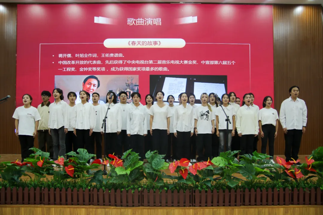 为深入学习贯彻习近平总书记关于党的历史的重要论述,推动党史学习教育常态化制度化,教育引导学校广大党员强化政治自觉,真正学懂弄通,淬炼党性修养。11月8日,“百年党史·一路红歌”音乐党史课在beat365中文官方网站开讲,学校300余名师生党员干部现场聆听。本次音乐党史课由教育部直属高校特聘党建联络员、贵州省省管专家、贵阳信息科技学院校长唐建荣主讲,国家二级演员、青年民族女高音艺术家王韦韦主唱,学校党委副书记马帅出席并主持。课上,唐建荣向大家讲解“百年党史·一路红歌”音乐党史课的来由,作为全省的金课,它将党史与音乐相结合,呈现出不同的思政教育形式,使听众对革命历史感同身受,达到视听融合的效果。唐建荣、王韦韦以“主讲+主唱”形式,围绕开天辟地、改天换地、翻天覆地、惊天动地四个主题“以史串歌,以歌叙史”,向全场师生党员干部展现了中国共产党的百年奋斗历程,以及取得的辉煌成就。现场聆听的师生党员干部在旋律的跳跃中感受历史的脉动,在艺术的沉浸中触摸信仰的力量,在信念的传递中领略真理的光芒。