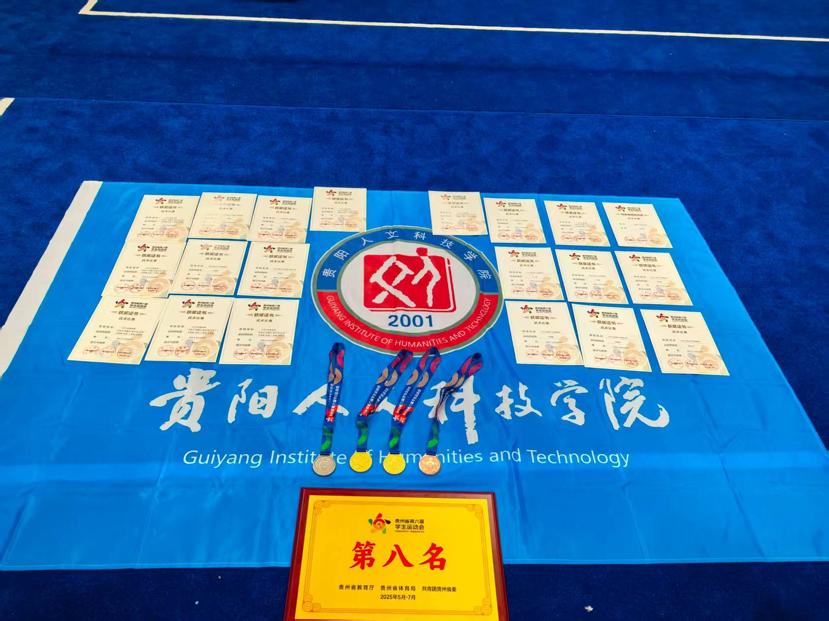 在7月23日至25日举行的贵州省第六届大学生运动会武术项目中,beat365代表队由副校长周凌玉带领,在教练员陈晓梅、吴玉伟、黄小英悉心指导下充分发挥顽强拼搏、勇于争先的精神,在强手如林的赛场上斩获佳绩,获奖如下: