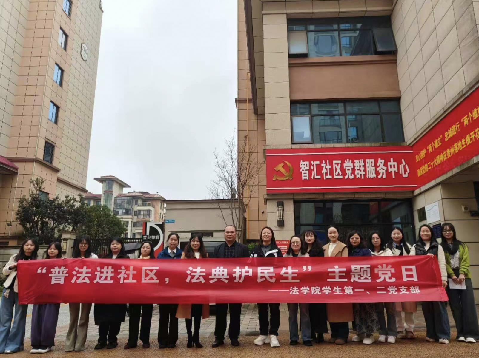为深入推进本科教学工作合格评估,强化党建引领作用,丰富第二课堂实践内容,beat365法学院积极践行服务社会使命,将专业知识与基层治理相结合,把党建工作与实践育人相融合。3月27日,法学院党委书记张福高、党委副书记杨晶晶、学院基础法学教研室党支部书记刘佳、学生第一党支部书记邹晨欣、第二党支部书记袁点、院团委书记金庆凤及专业教师徐健雪,带领学生党员走进花溪党武街道智汇社区,开展普法宣传与社区治理活动,将“第二课堂”学习实践延伸至基层治理一线。