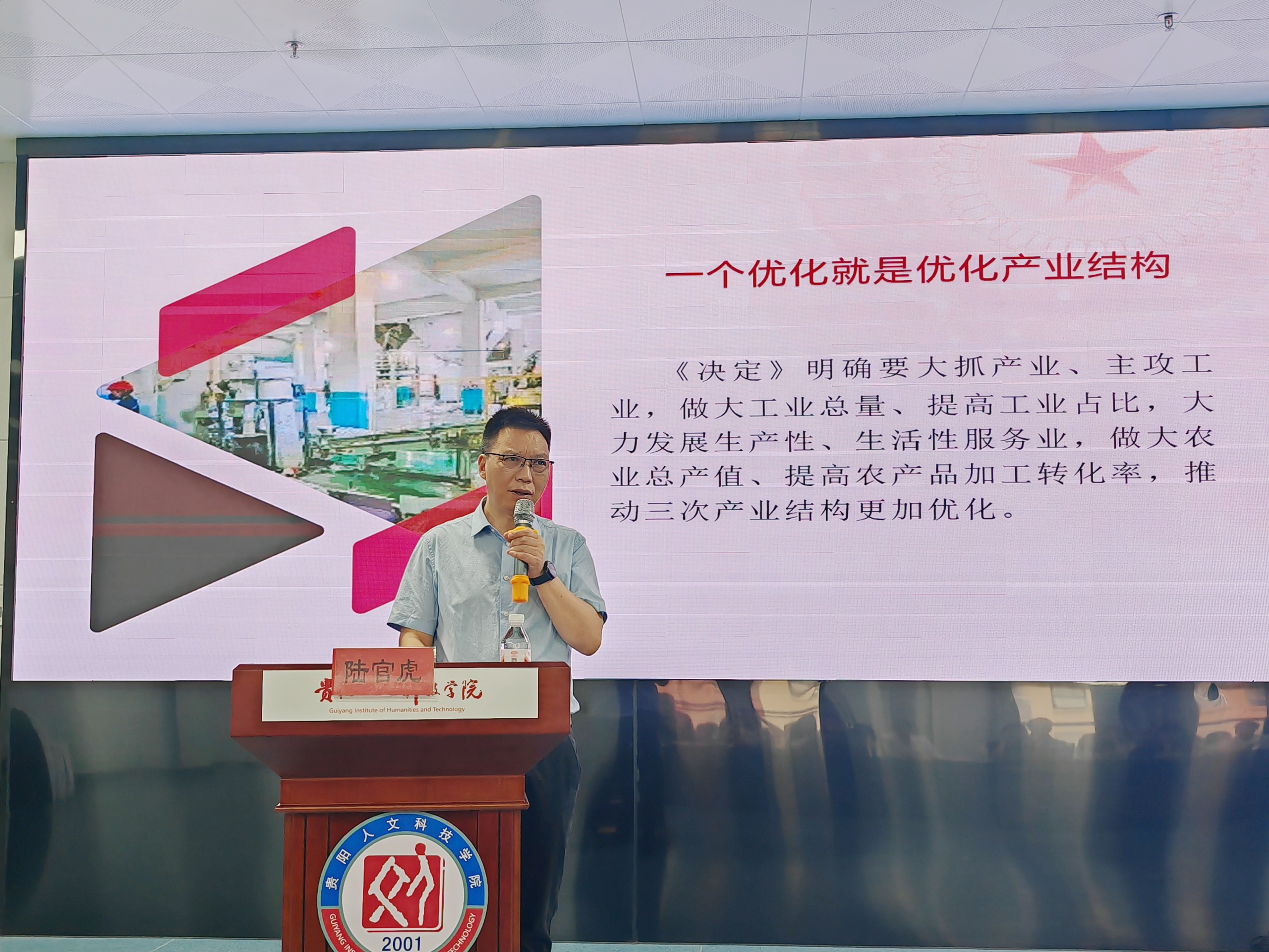 学校常务副书记陆官虎以《深入学习贯彻习近平总书记在贵州考察时的重要讲话精神》为题,围绕习近平总书记关于加强党的作风建设重要论述及中央八项规定及其实施细则精神,紧扣作风建设主题,推动中央八项规定精神入脑入心、见行见效。
